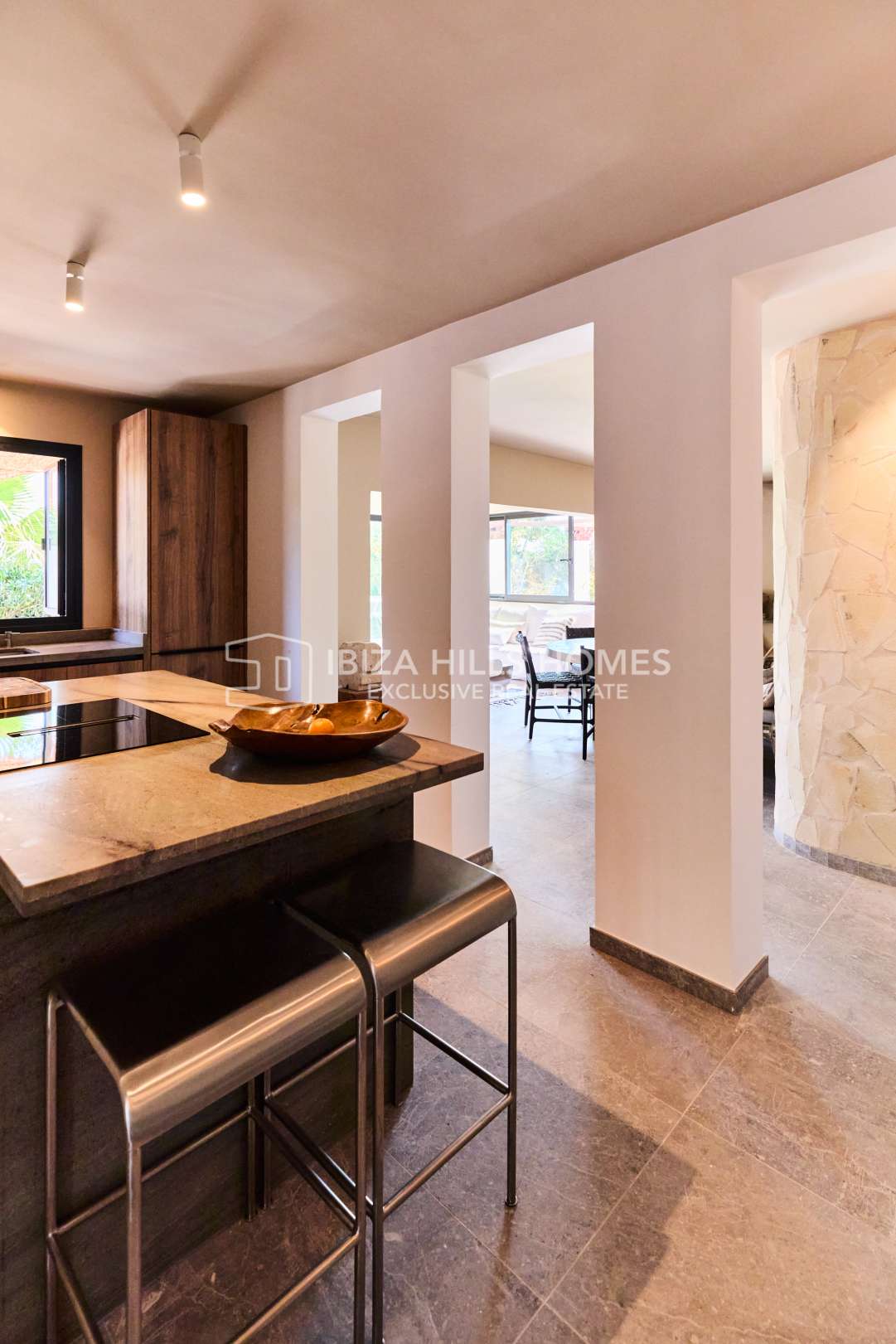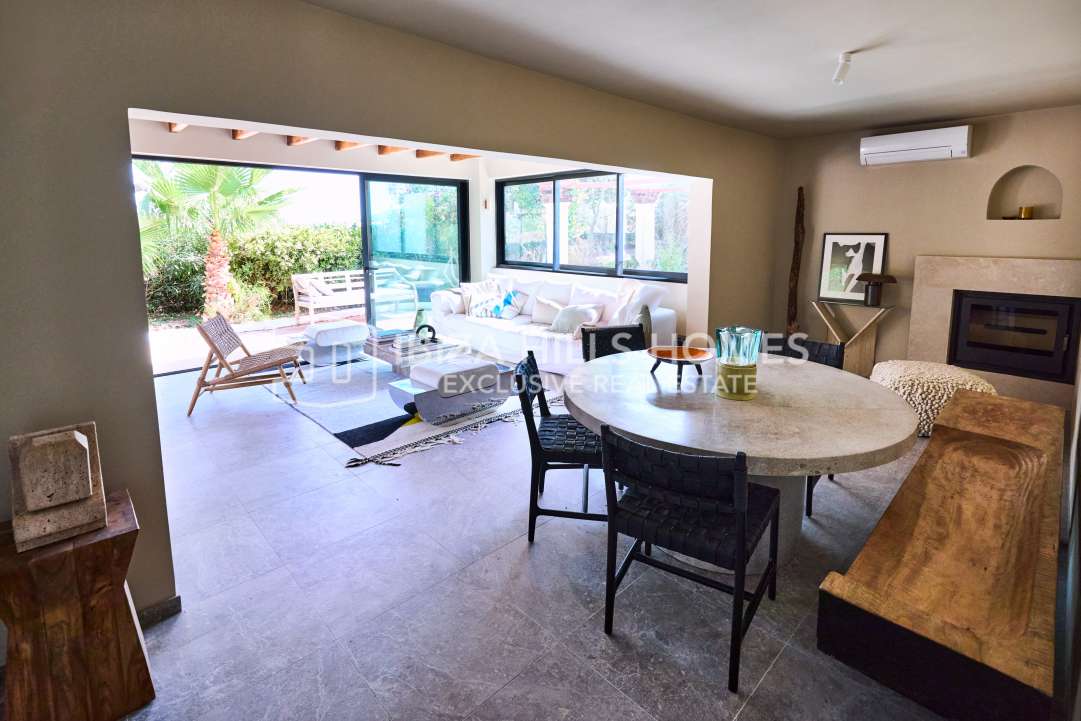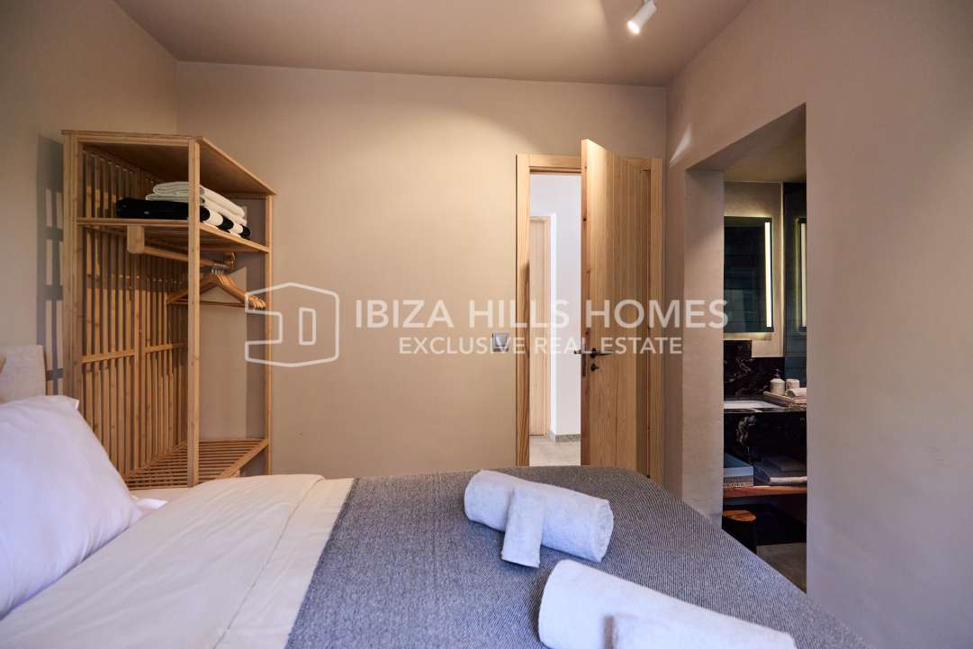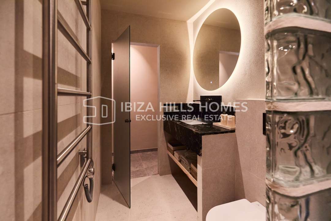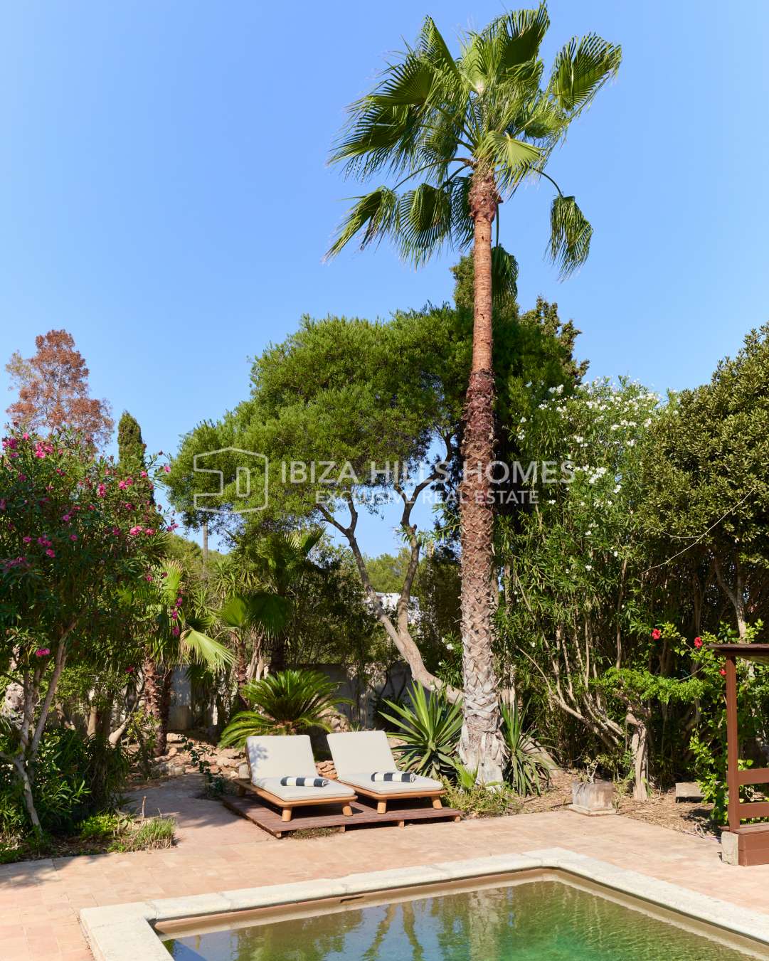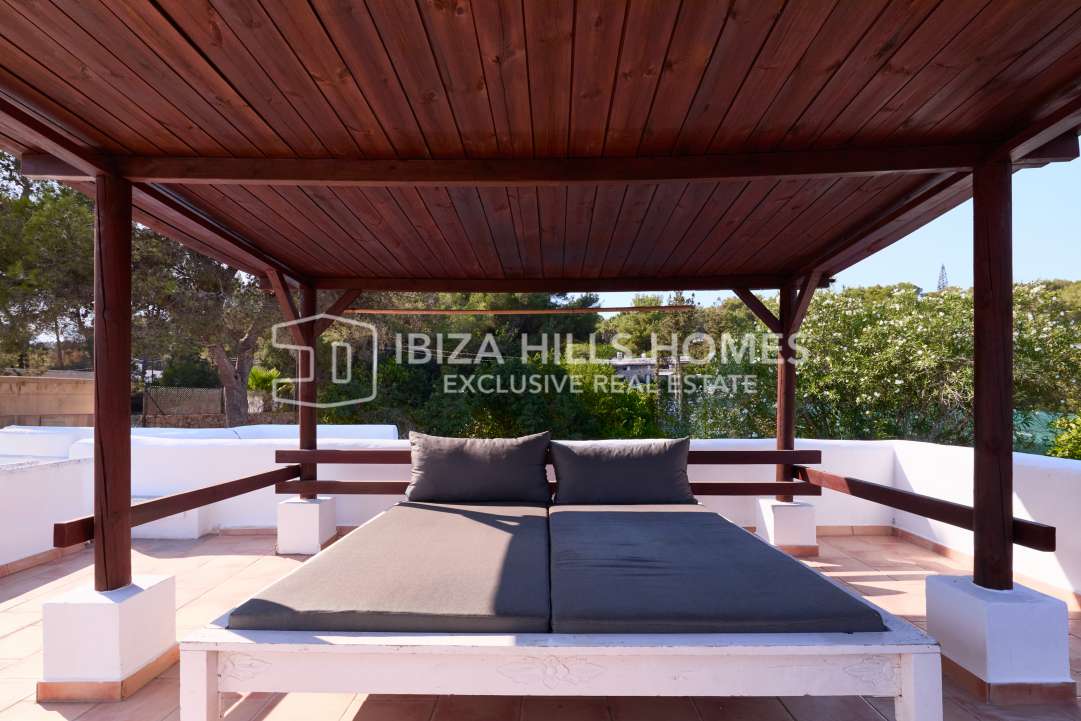 Exclusiva villa de lujo en alquiler en Ibiza con piscina privada, sauna, terraza rooftop y jardín. Capacidad para 6 personas. Precios desde 750 € por noche.