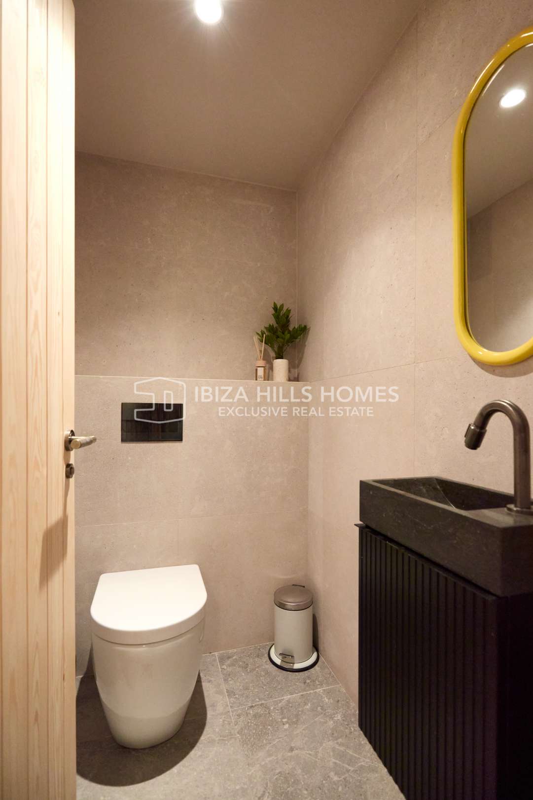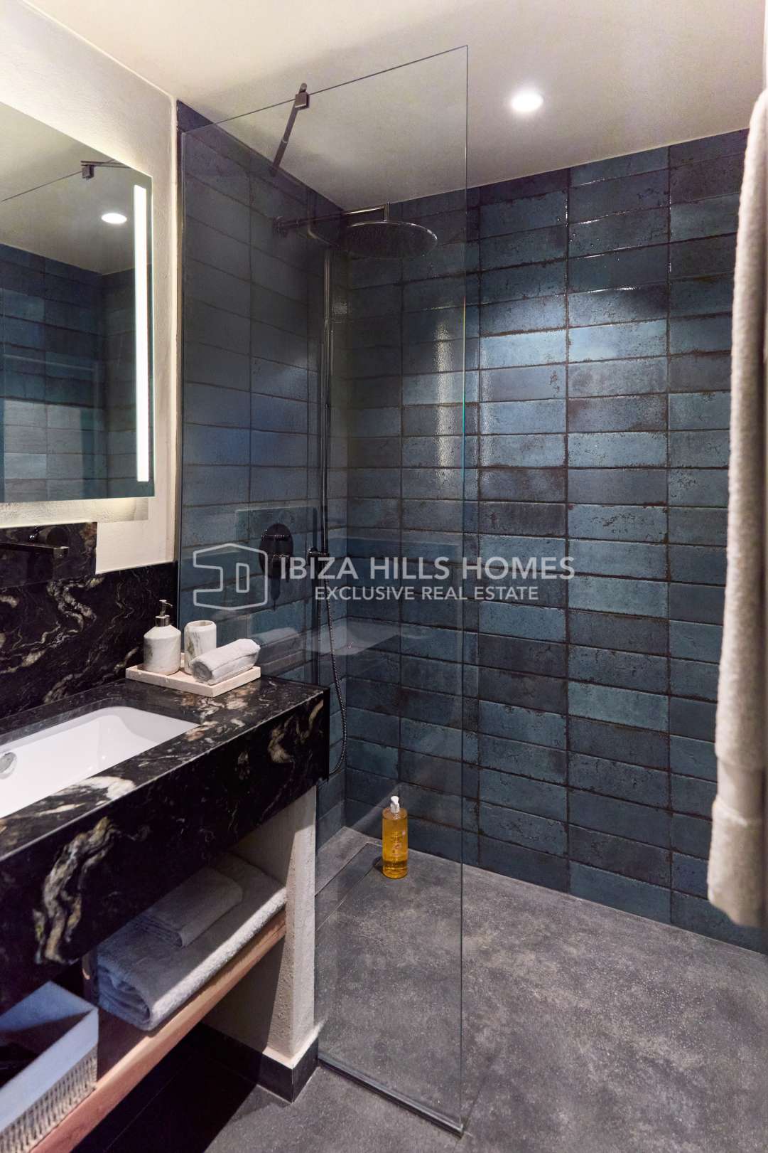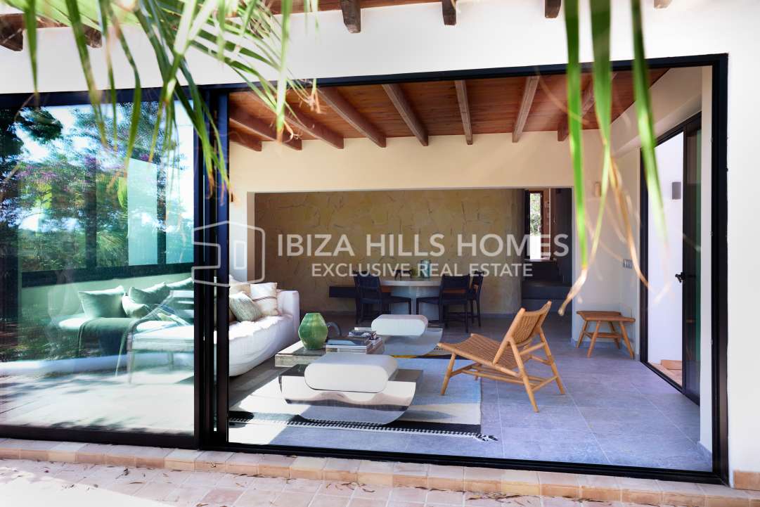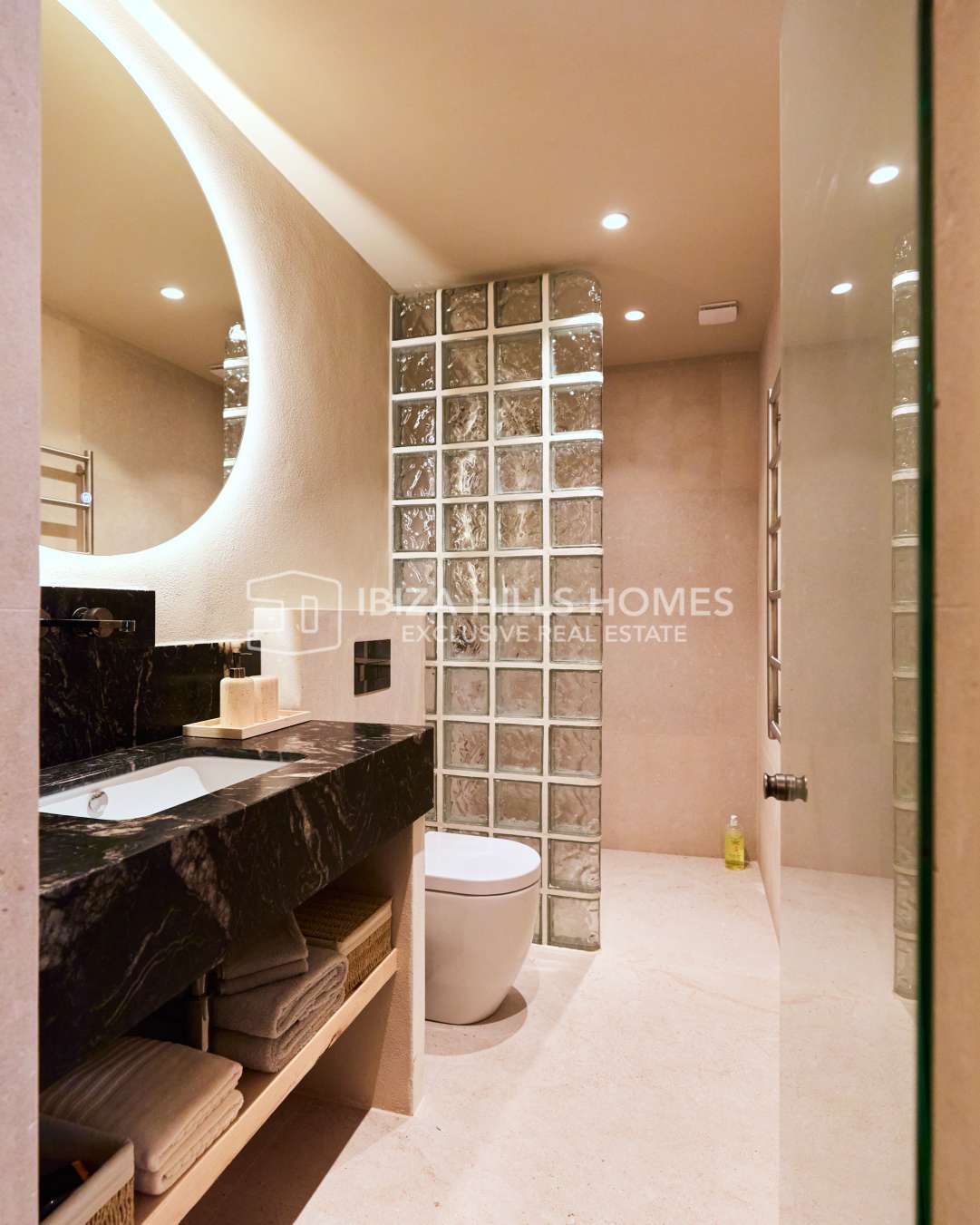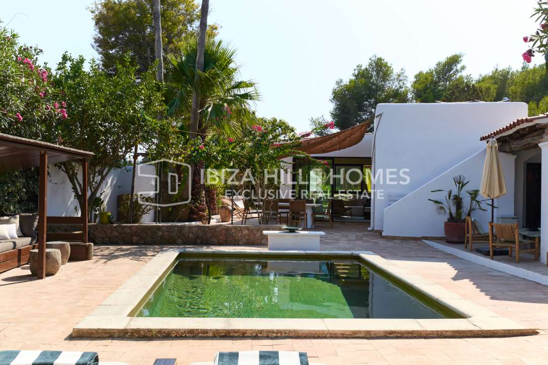 Exclusiva villa de lujo en alquiler en Ibiza con piscina privada, sauna, terraza rooftop y jardín. Capacidad para 6 personas. Precios desde 750 € por noche.