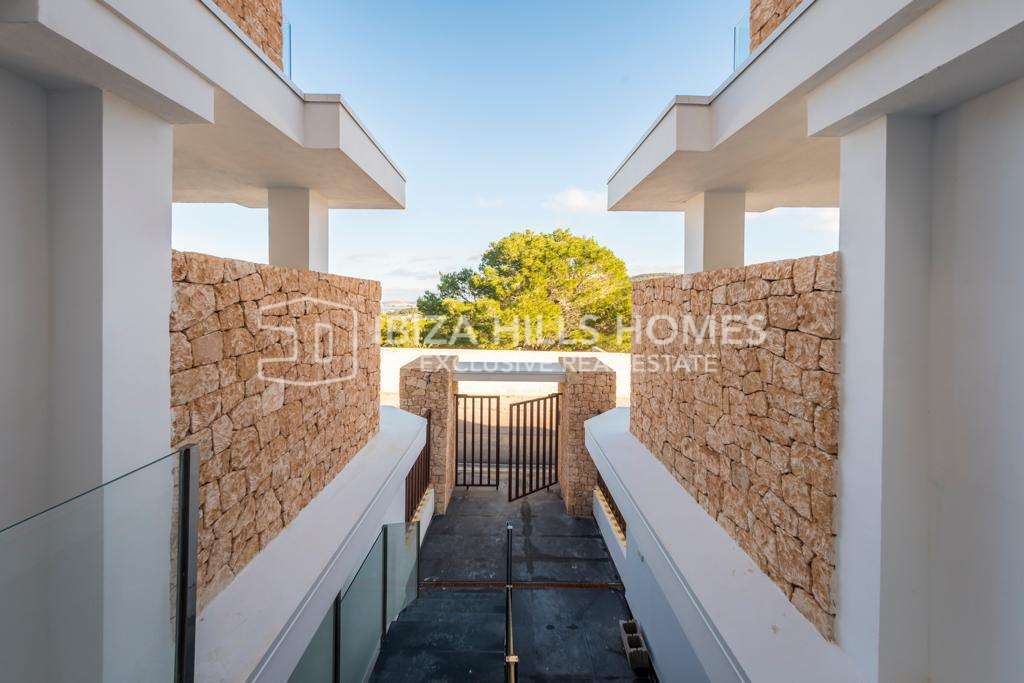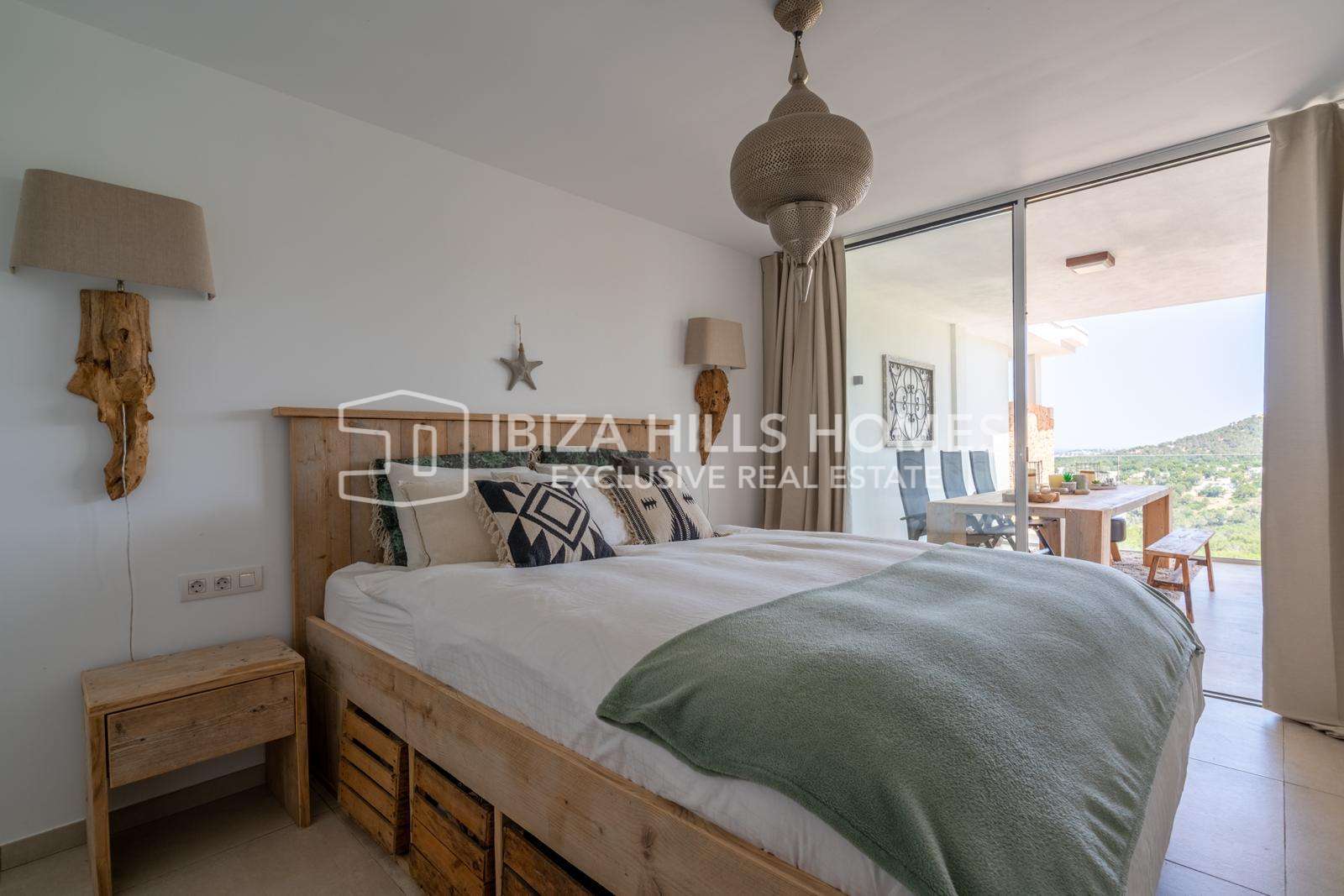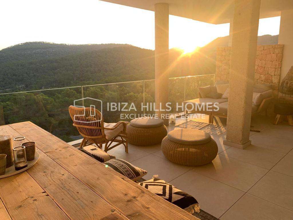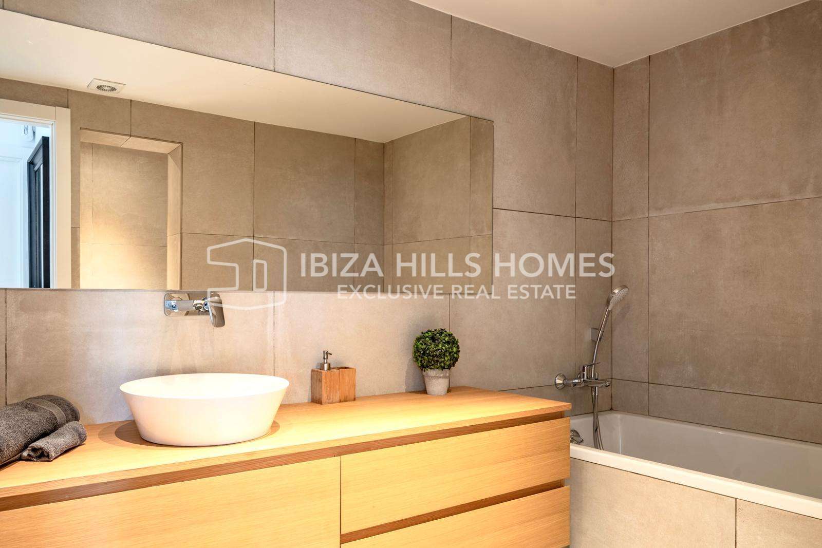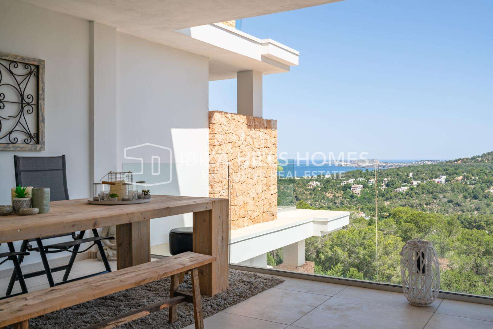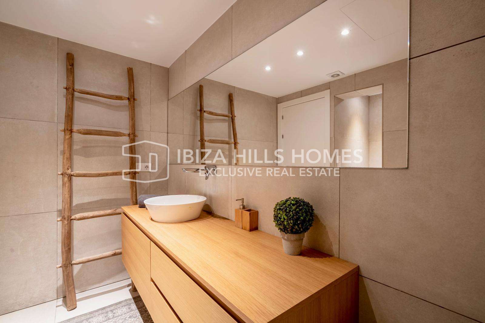 Ein besonderes Highlight ist die großzügige private Terrasse von 33 m², die eine harmonische Verbindung zwischen Innen- und Außenbereich bietet und zudem einen schönen Meerblick ermöglicht. Dieser Außenbereich eignet sich perfekt für Mahlzeiten im Freien, Entspannung oder um die spektakulären Sonnenuntergänge Ibizas zu genießen.