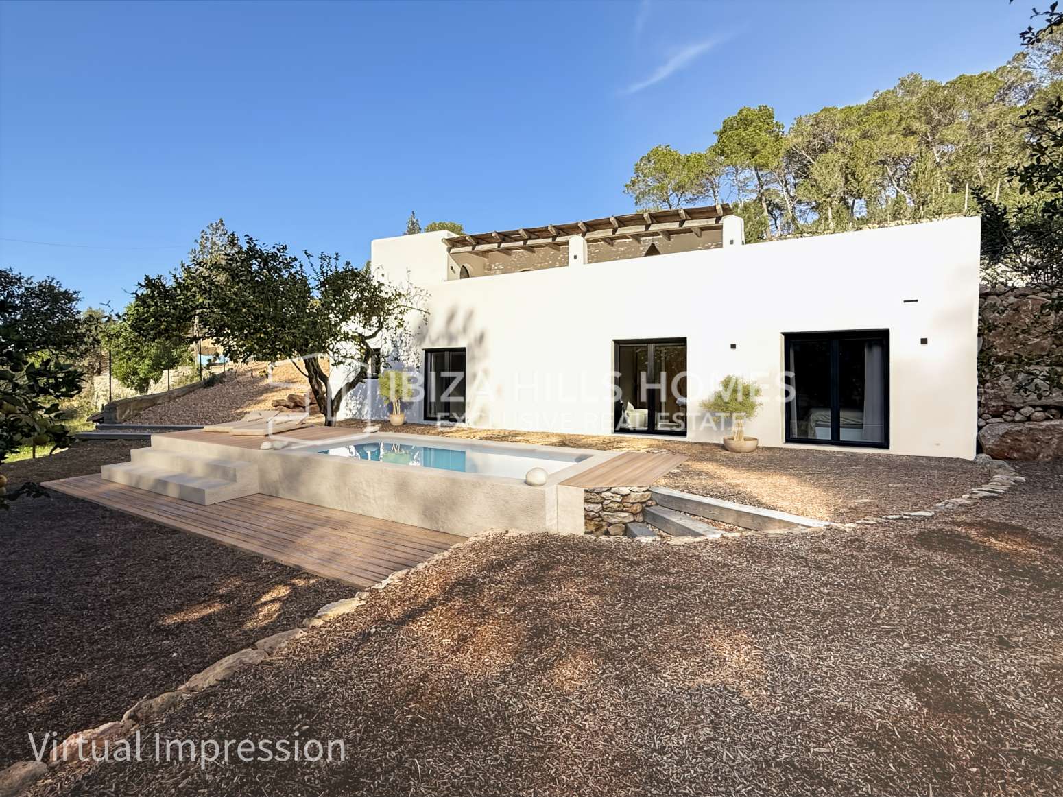 Discover this exquisite villa nestled in the serene Morna Valley, perfectly positioned between San Lorenzo and Santa Eulària. Surrounded by lush forest, meandering walking paths, and scenic cycling trails, this property offers the ideal blend of privacy, nature, and convenience—just 10 minutes from the vibrant villages of Santa Eulària and San Carlos.