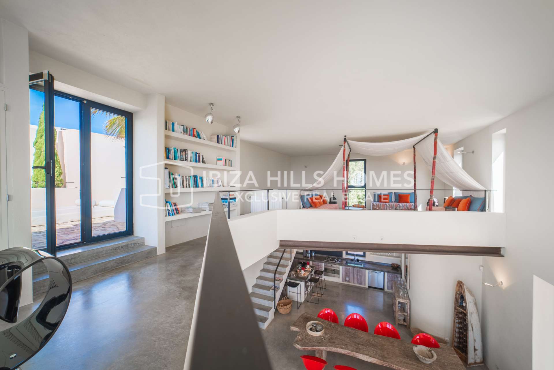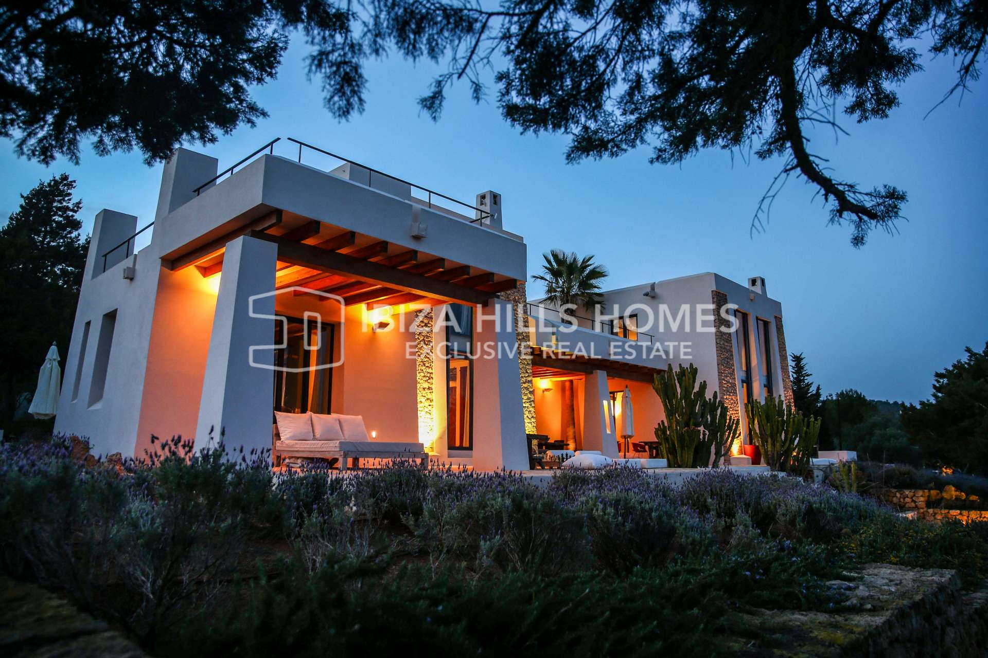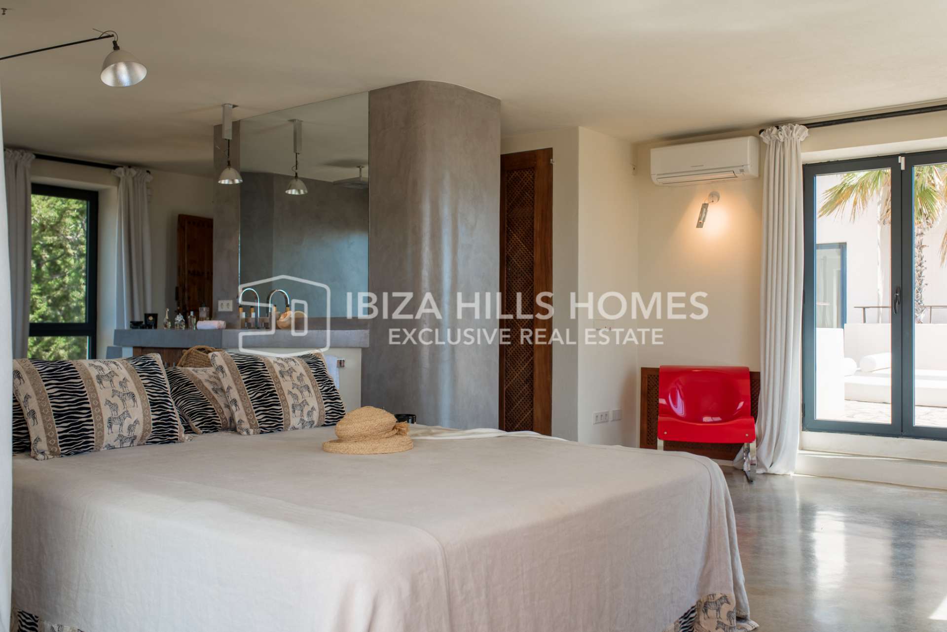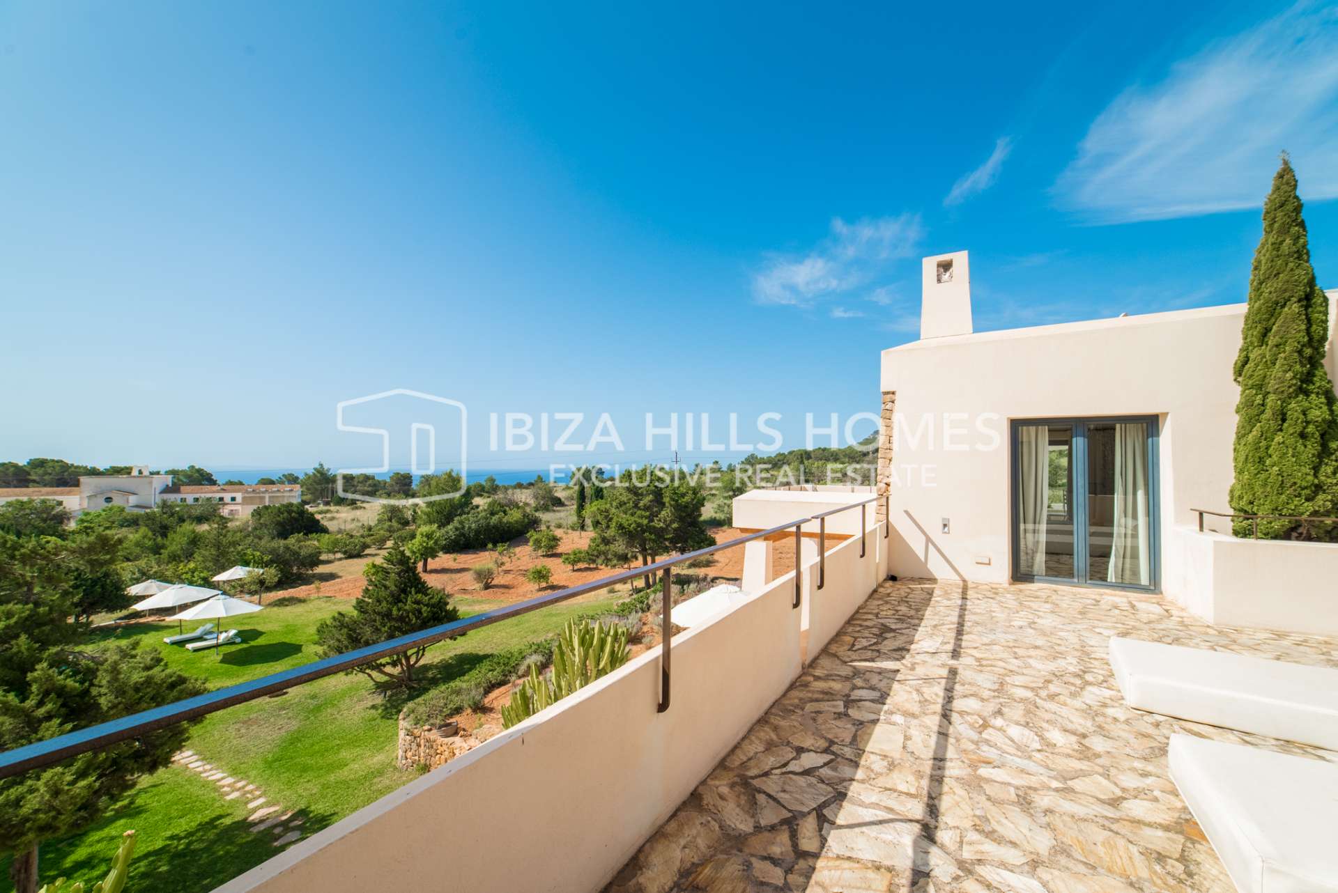 Renovated finca for sale near Sant Josep Ibiza. Luxury villa with guest house, large 10,000 m² plot, pool, rooftop terrace and panoramic countryside views.