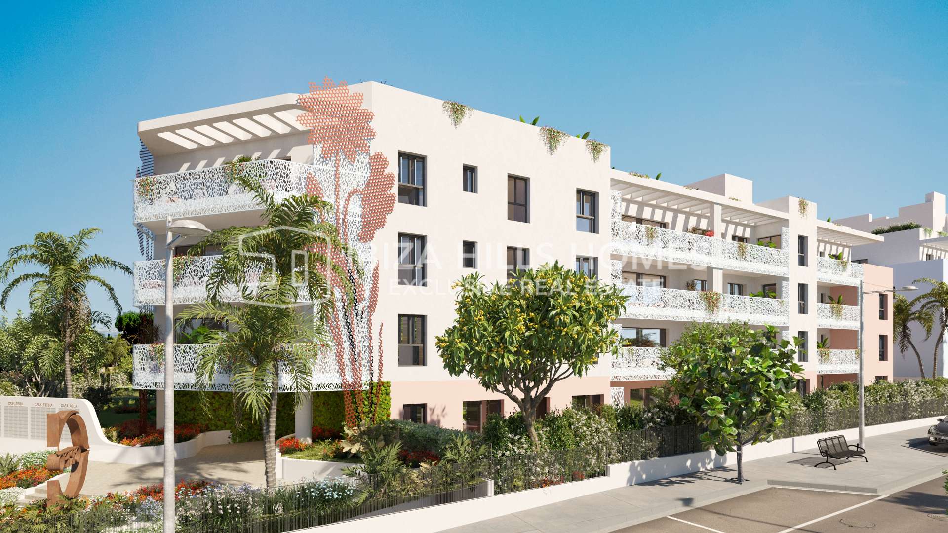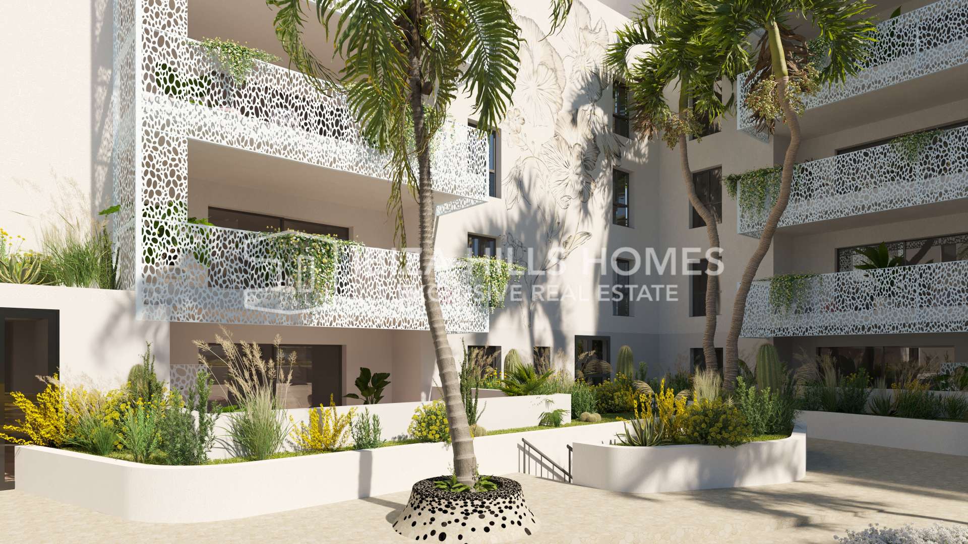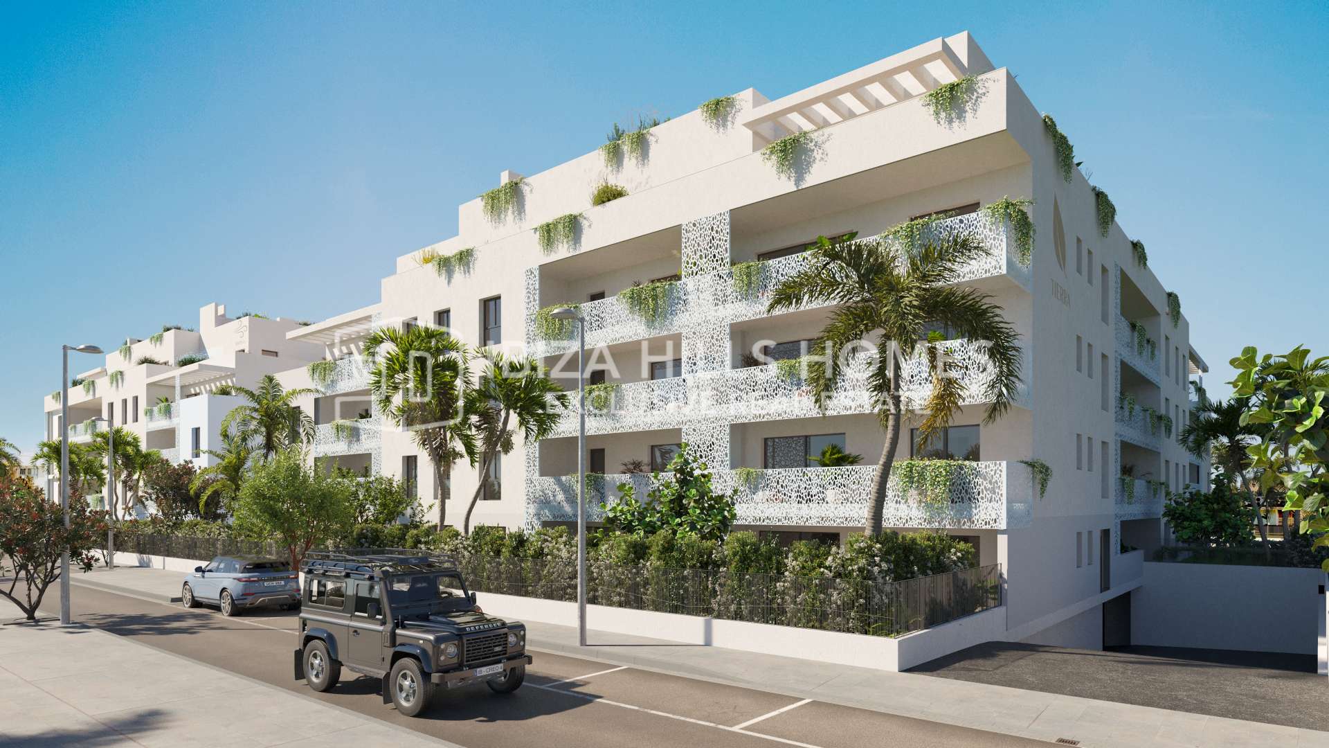 Located in Playa d’en Bossa, the development places the beach, restaurants and everyday amenities within walking distance, while Ibiza Town is only five minutes away and the airport just ten. It is a position that allows you to be connected at all times, without giving up privacy.