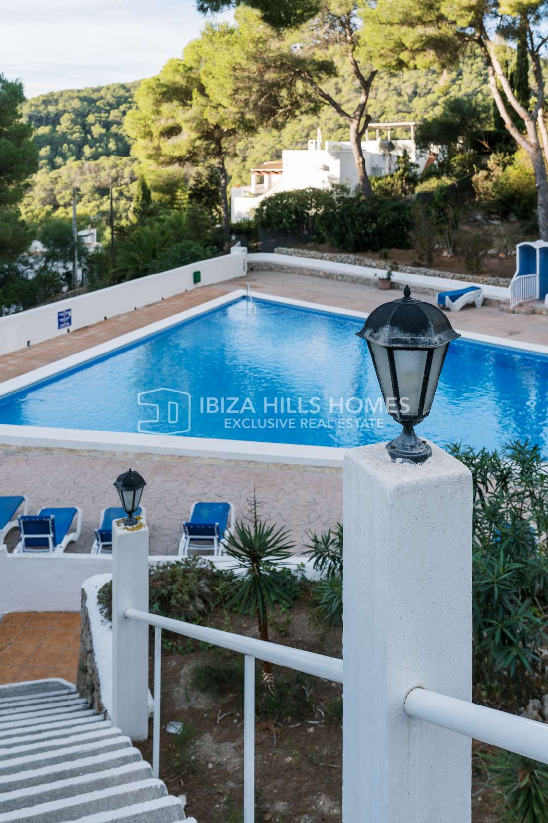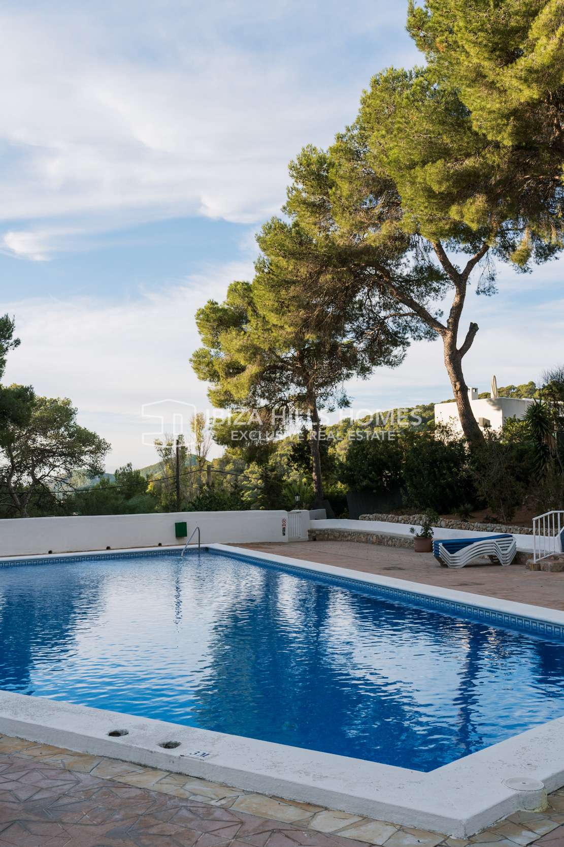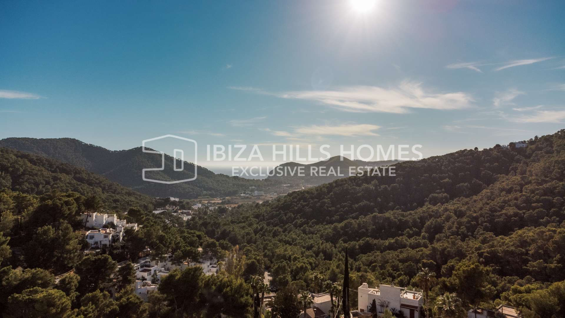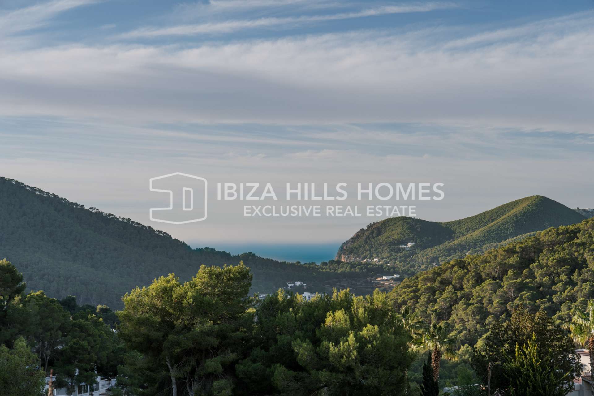 The elevated position provides open views across the surrounding valleys towards the Mediterranean Sea and Formentera, creating a peaceful setting with excellent long-term value.