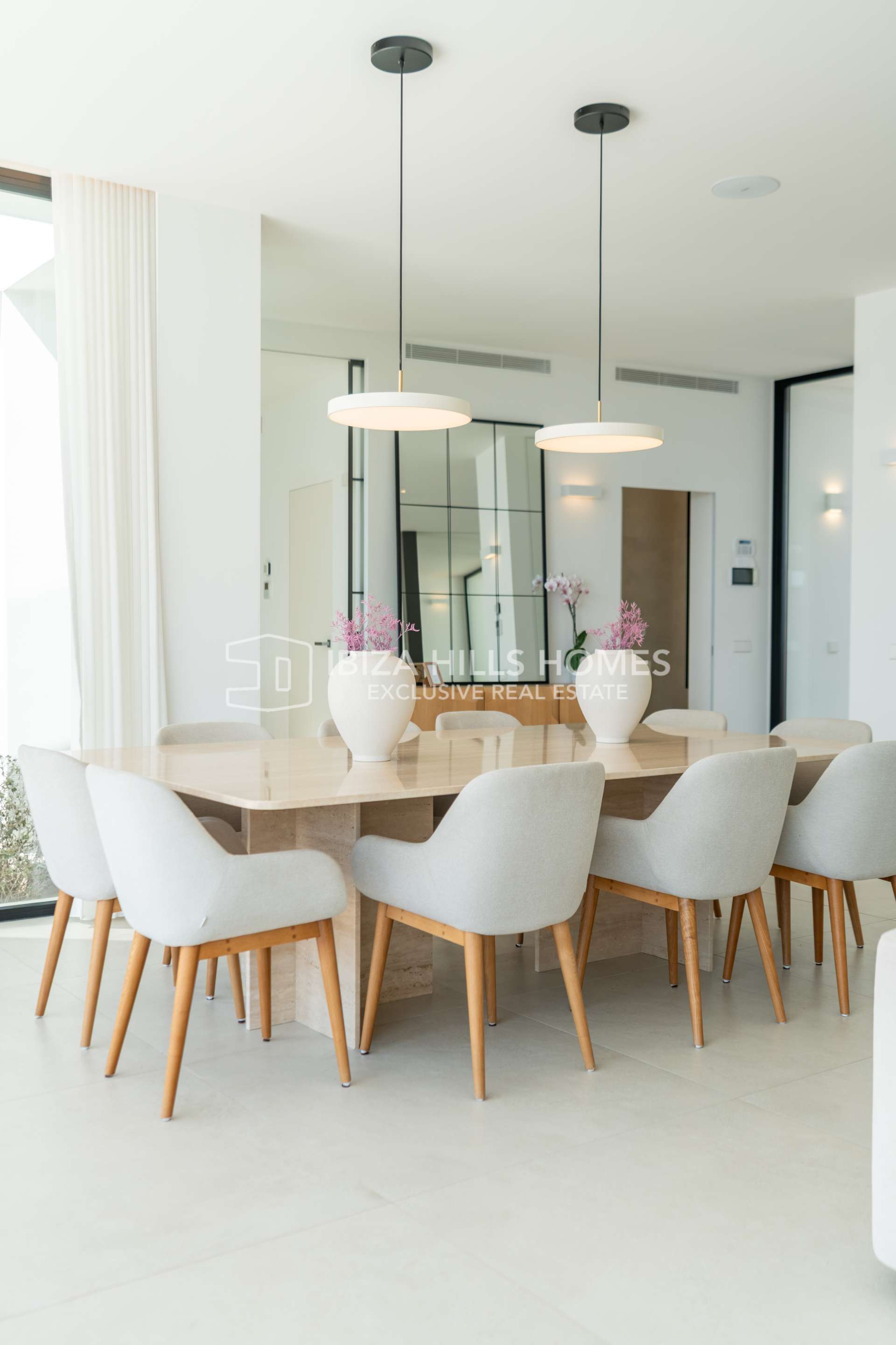 Completan la propiedad una zona de comedor exterior totalmente equipada, cocina moderna, lavandería y jardines mediterráneos que realzan la tranquilidad del entorno. Su ubicación estratégica permite un acceso rápido a Ibiza ciudad, la marina, el aeropuerto y varias playas, así como a algunos de los restaurantes y beach clubs más reconocidos de la isla.