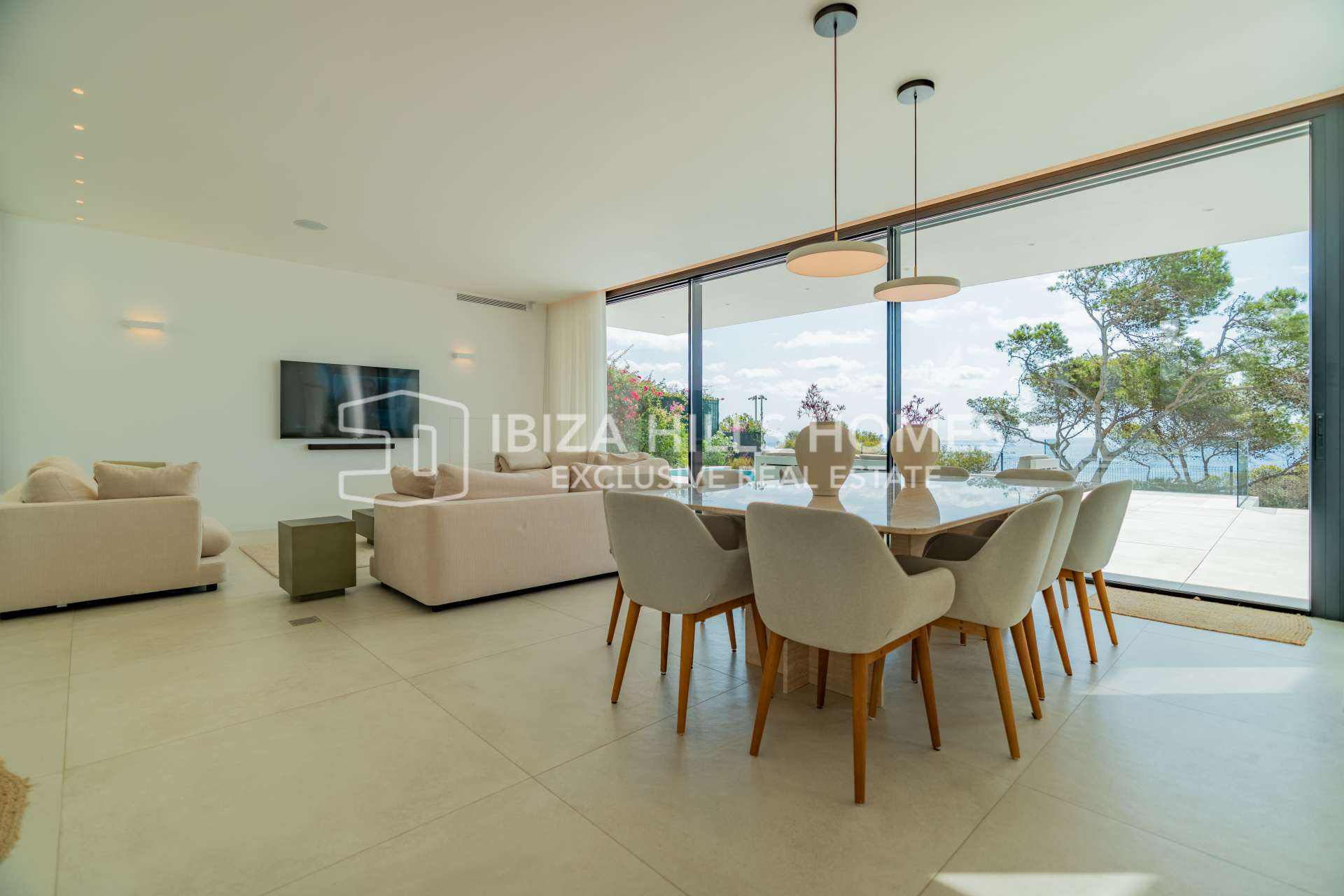 Esta villa de lujo en primera línea de mar, situada en el prestigioso enclave de Cap Martinet, ofrece un entorno privilegiado para disfrutar de una estancia excepcional en Ibiza. Con un diseño arquitectónico contemporáneo y grandes superficies acristaladas, la propiedad se integra a la perfección con el paisaje mediterráneo, permitiendo disfrutar de vistas abiertas al mar desde prácticamente todos los espacios.