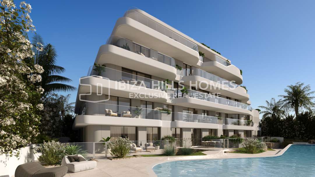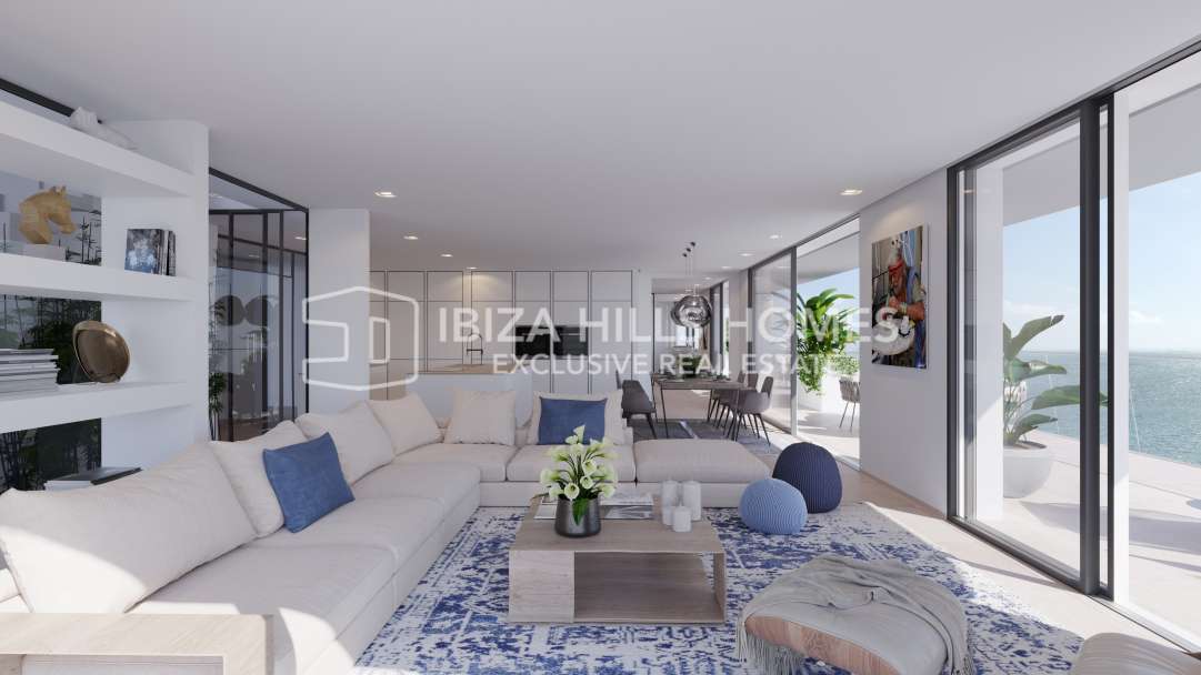 Appartements exclusifs en front de mer à Ibiza avec vue mer, terrasses, concierge et accès direct à la plage près d’Ibiza ville.