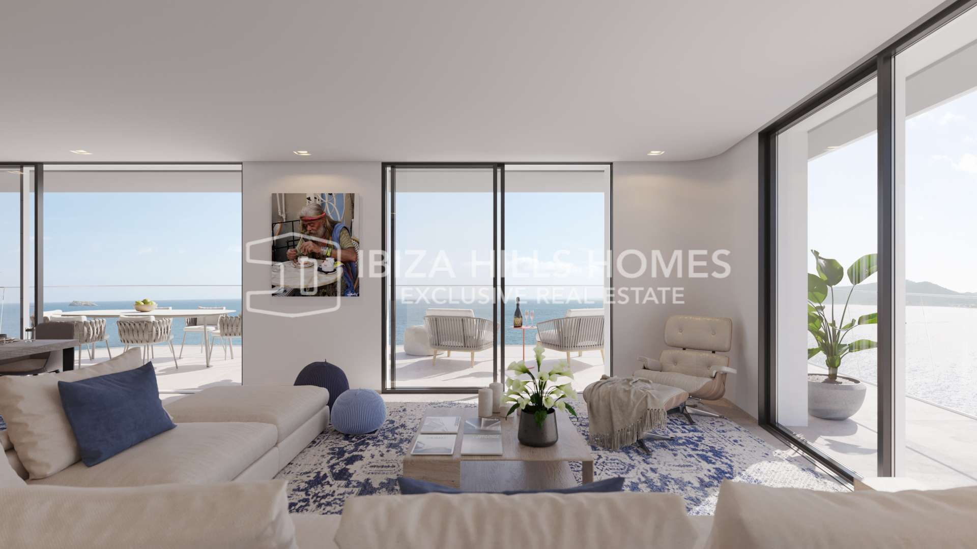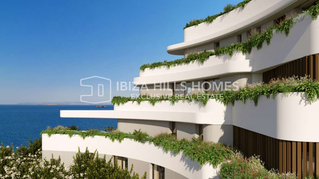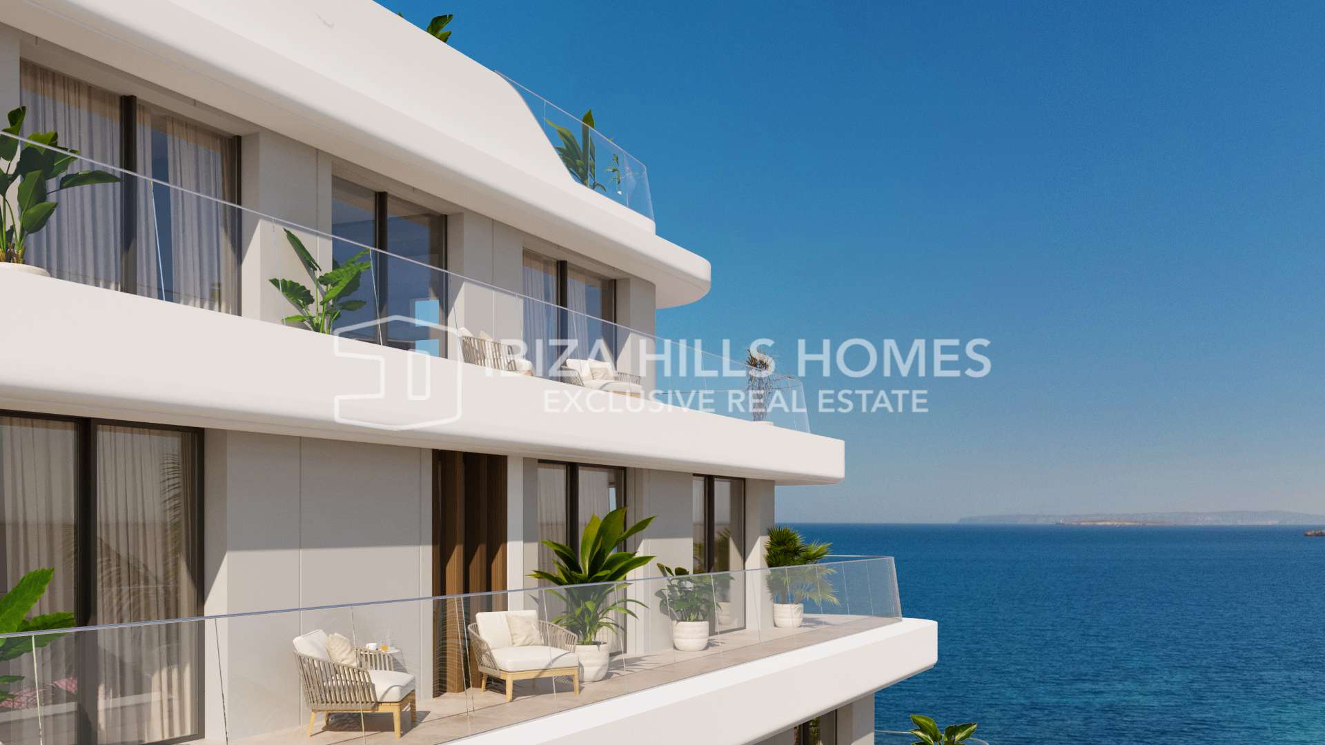 Appartements 2 chambres à Ibiza dès 2 950 000 € en front de mer avec vue mer, terrasses, concierge et accès direct à la plage.