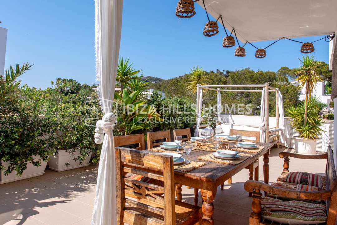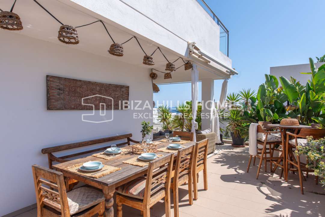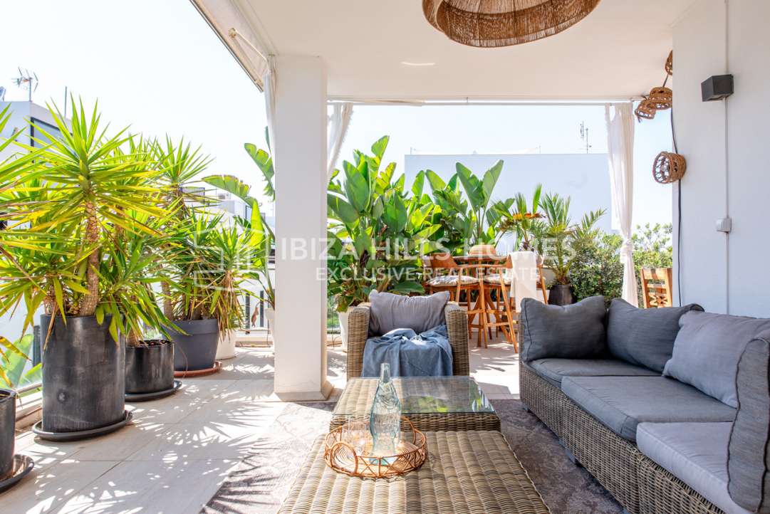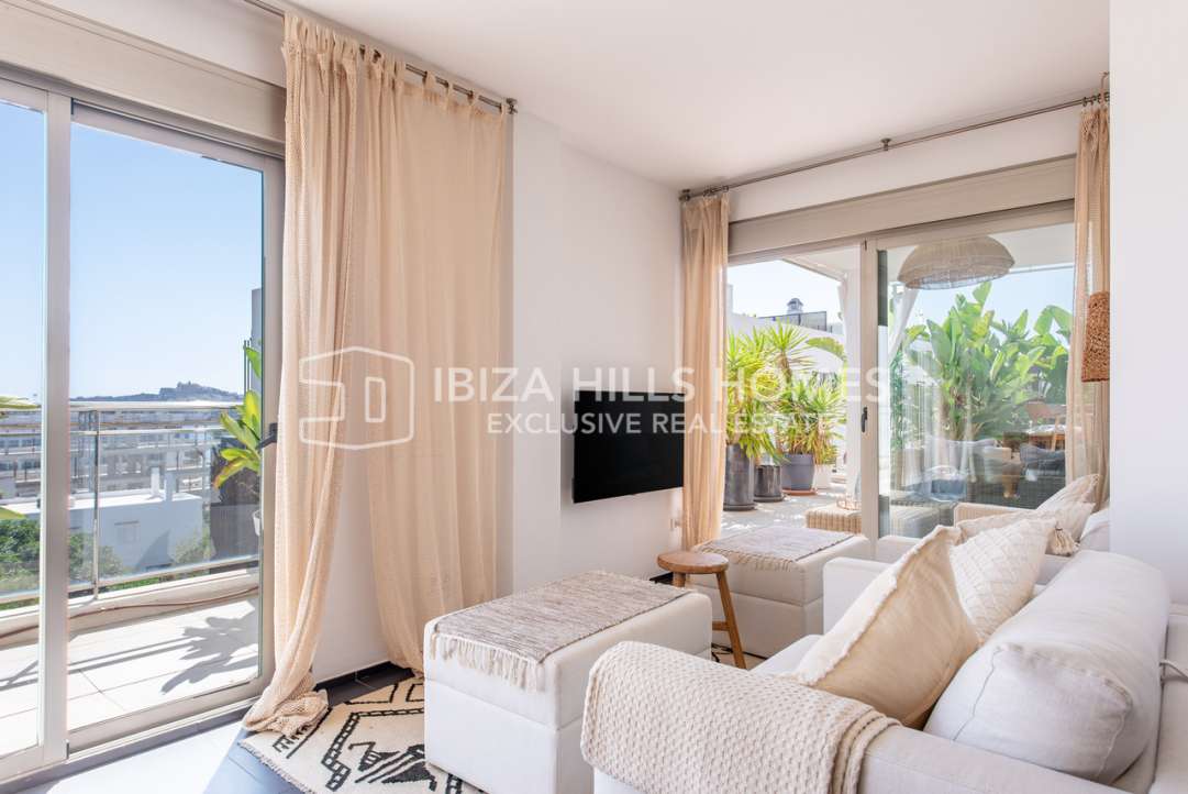 2-Schlafzimmer-Penthouses in Santa Eulària, Ibiza, mit großen Terrassen, privatem Solarium, Pool, Tiefgarage und Abstellraum. Ab 1.195.000 €.