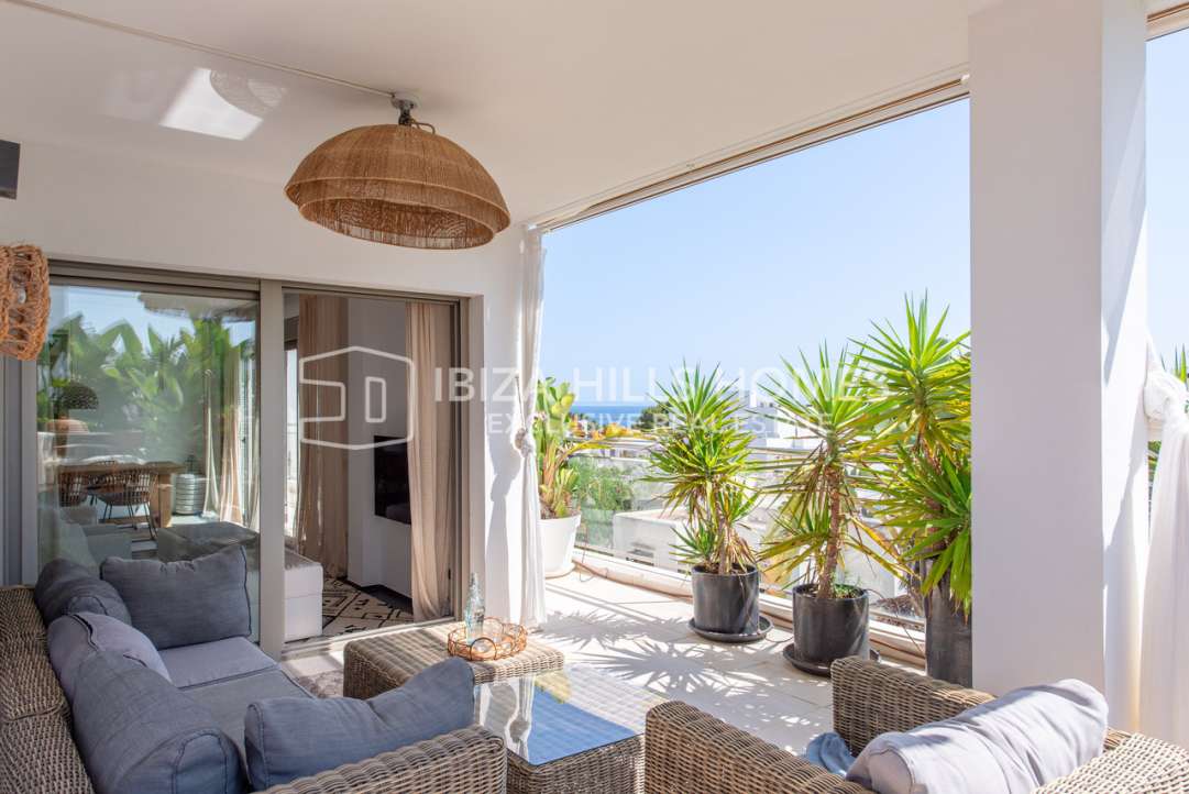 Großzügige 3-Schlafzimmer-Wohnung nahe Talamanca mit Meerblick, großer Terrasse, Tiefgaragenstellplatz und nur wenige Minuten von Ibiza-Stadt und Marina Botafoch entfernt.