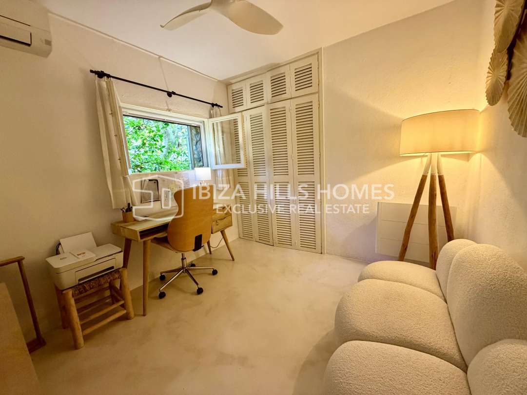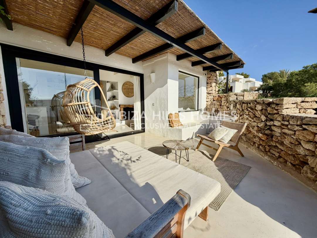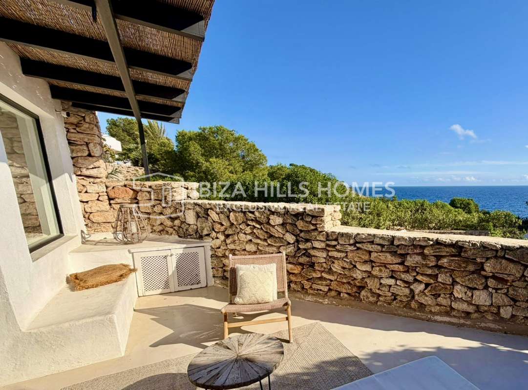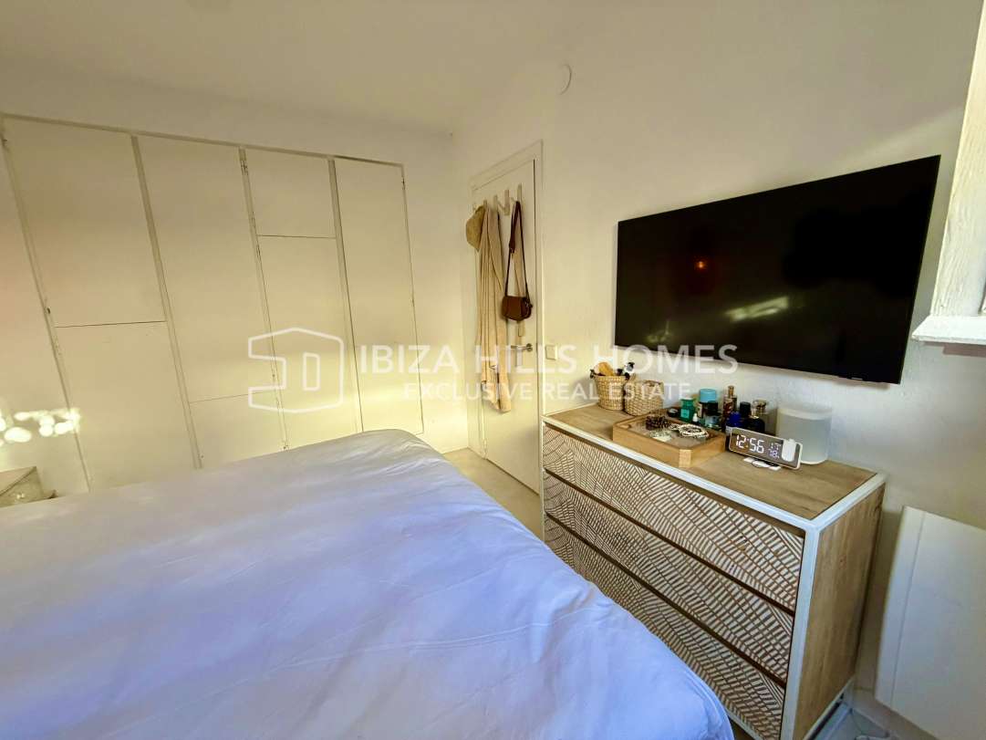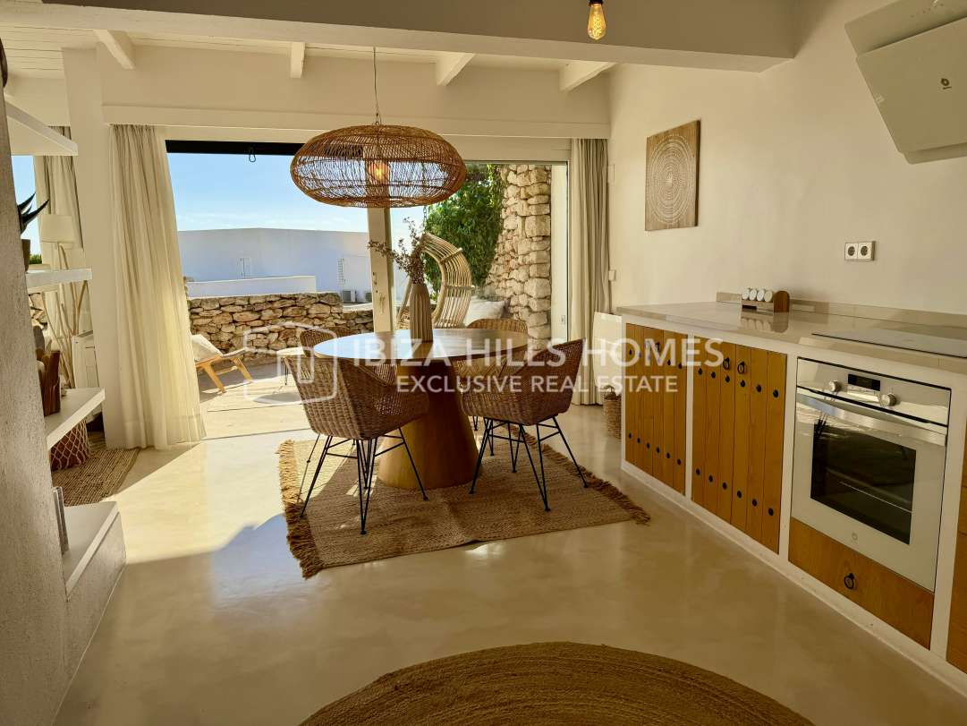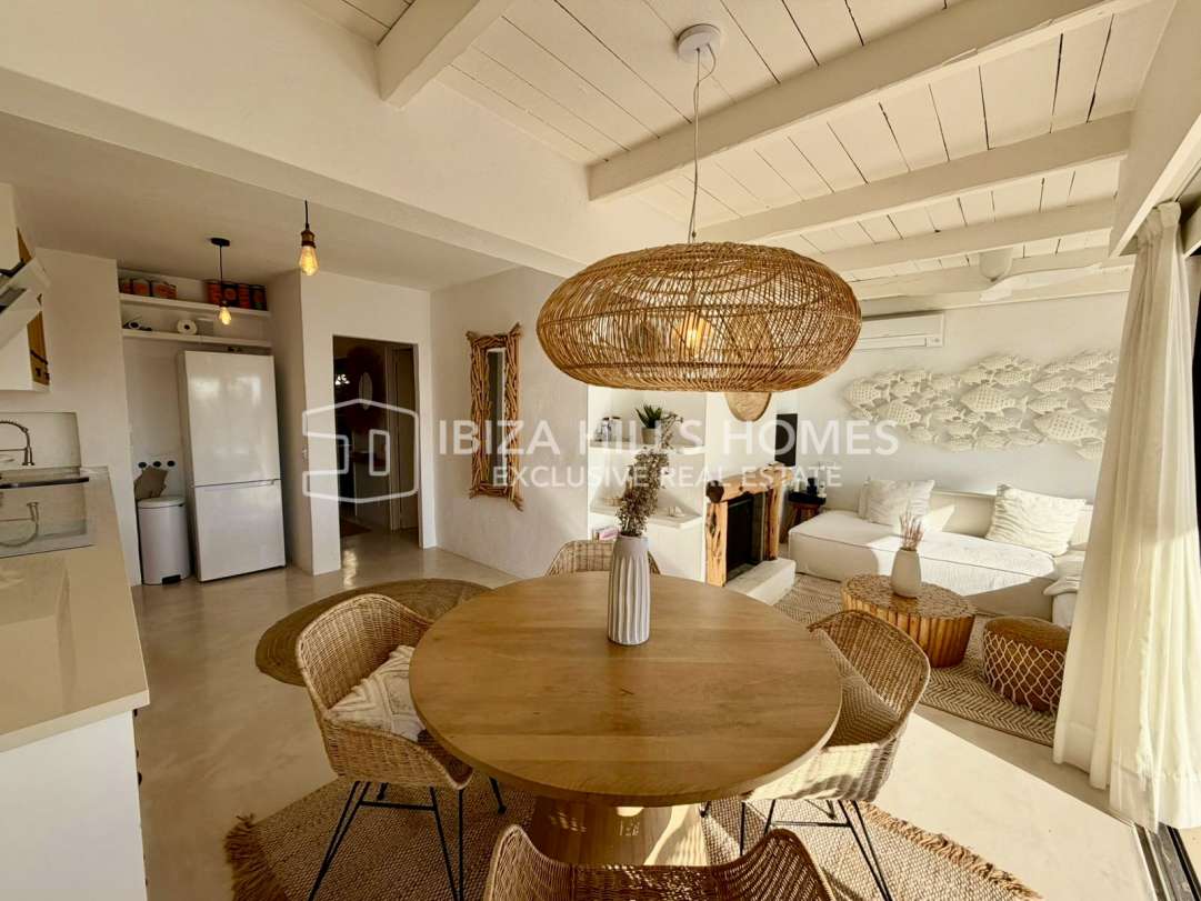 Charmantes renoviertes Reihenhaus in erster Meereslinie in Roca Llisa mit Meerblick bis Formentera, 24h-Sicherheit, Gemeinschaftspool, Kamin und Top-Lage nahe Stränden,...
