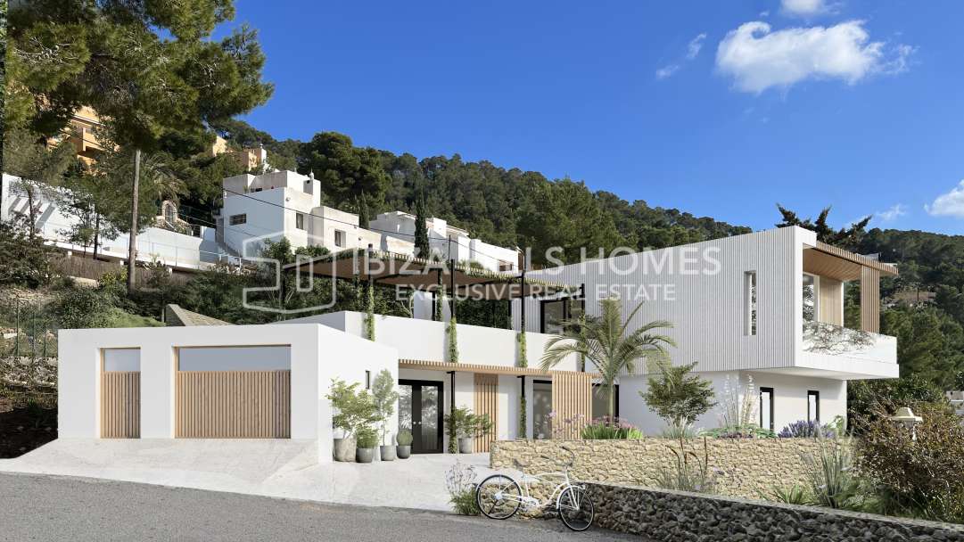 Villa project for sale in Ibiza with sea views to Formentera, private pool, corner plot and prime location near Santa Eulalia and Cala Llonga.