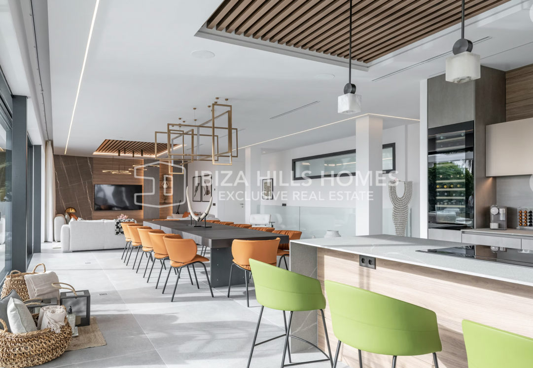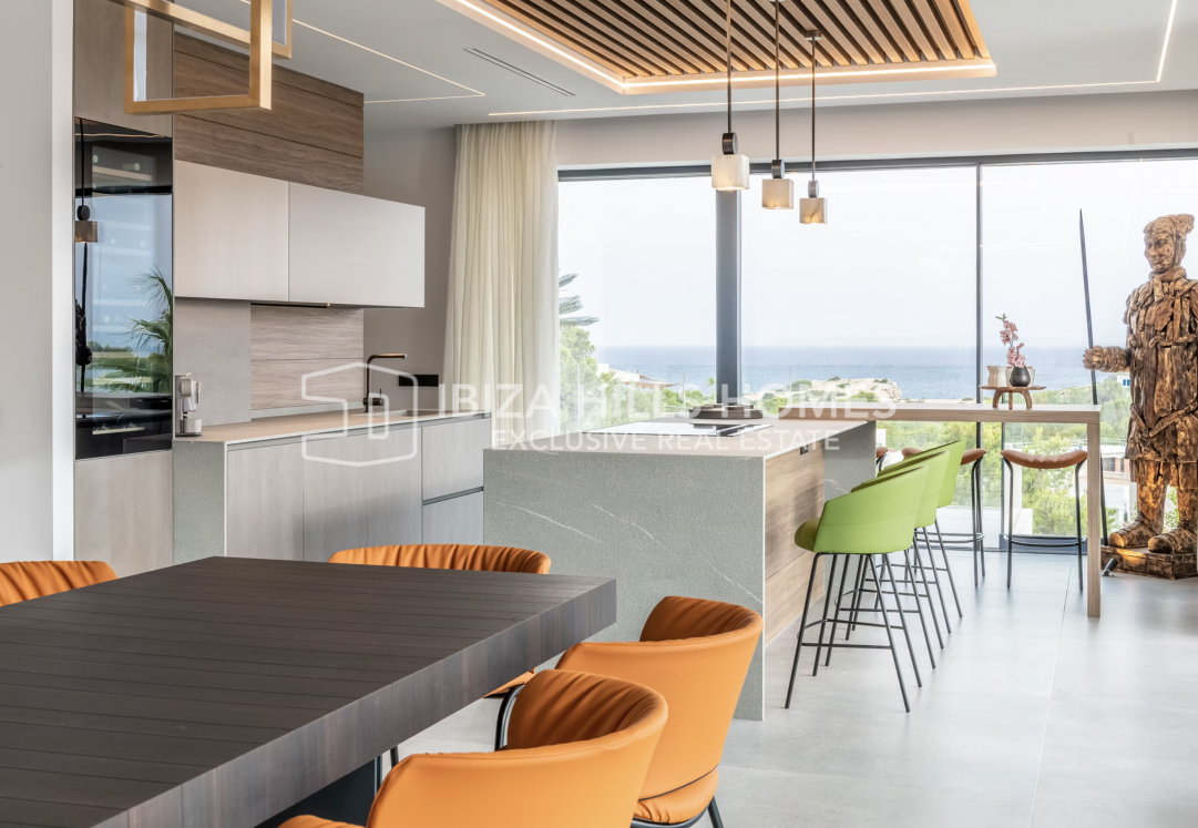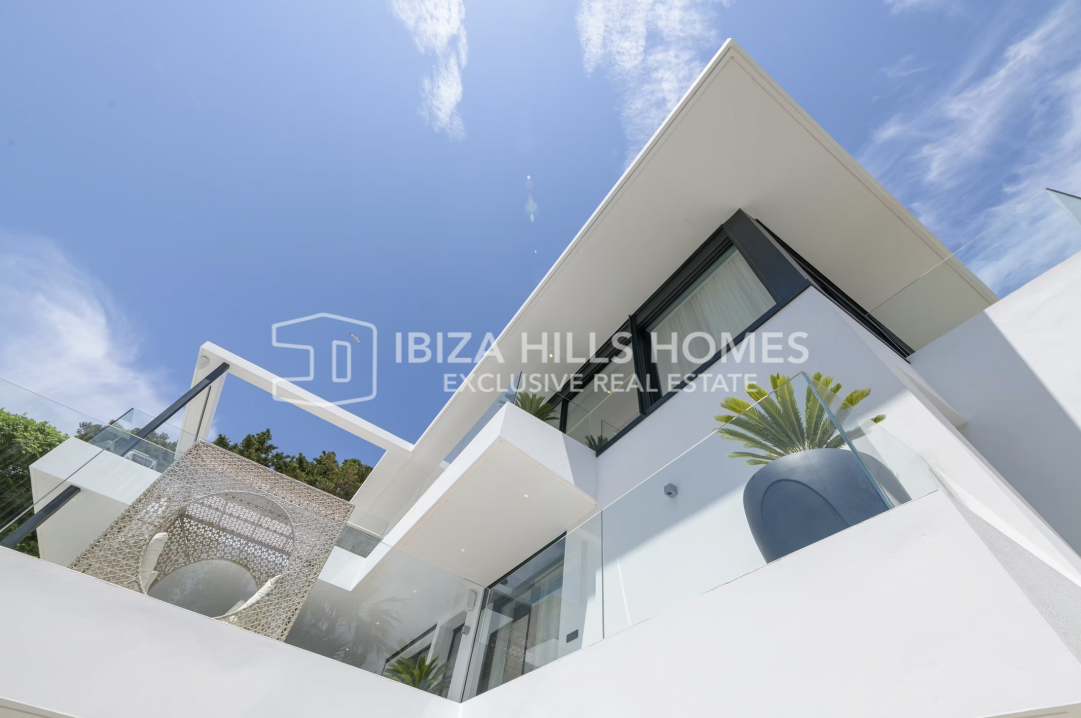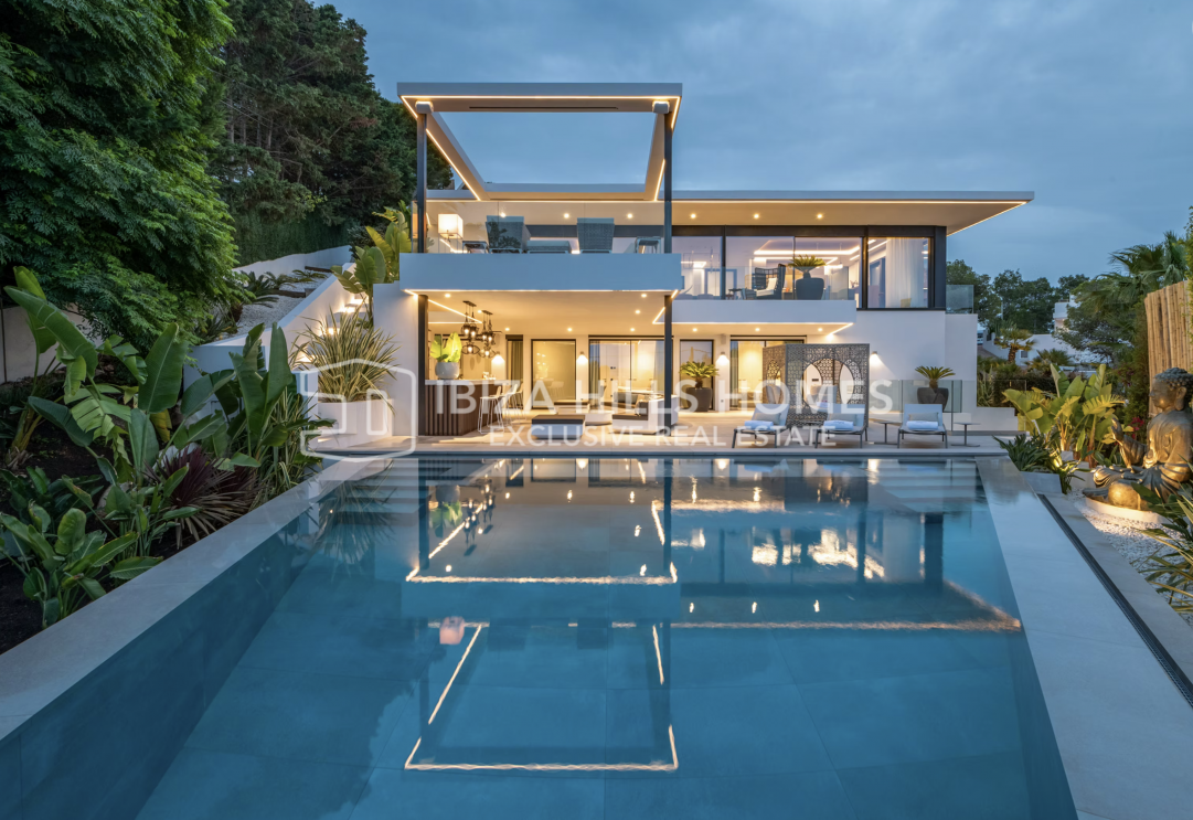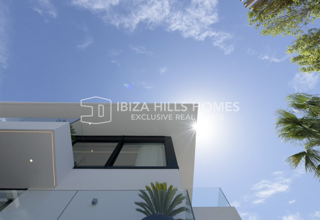 Contemporary luxury villa built in 2020 with infinity pool, panoramic sea views, elevator, and multiple suites, ideally located near Ibiza Town and Talamanca Beach.