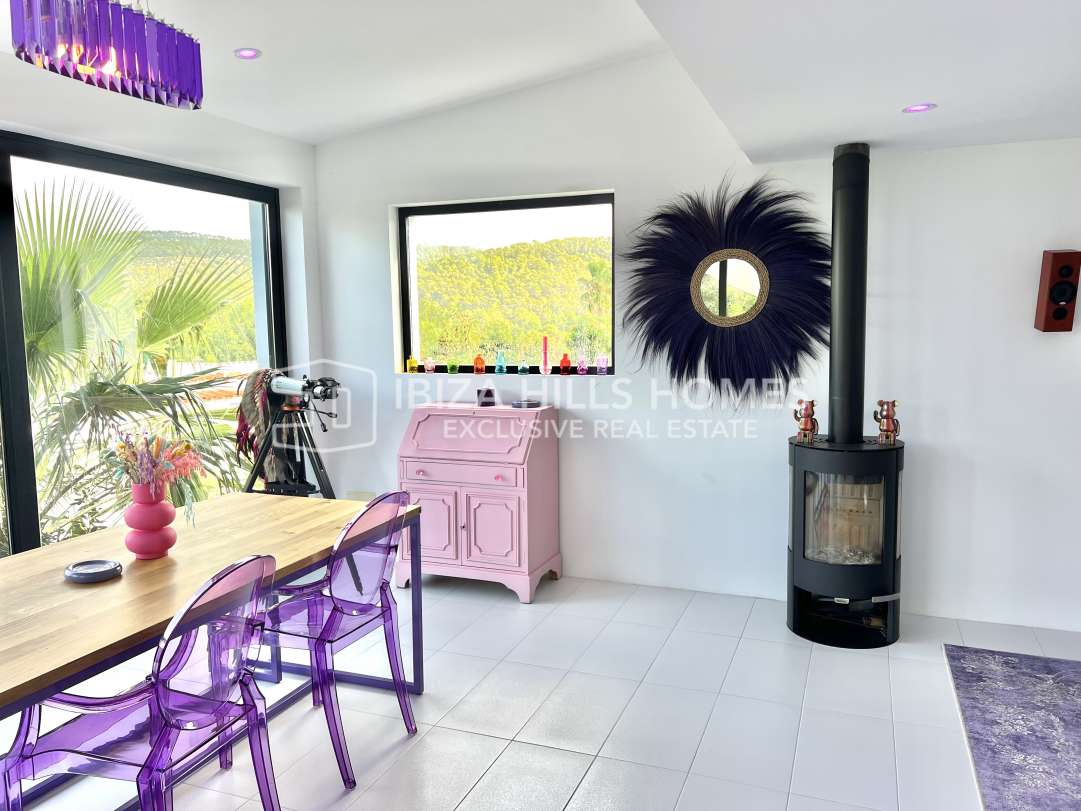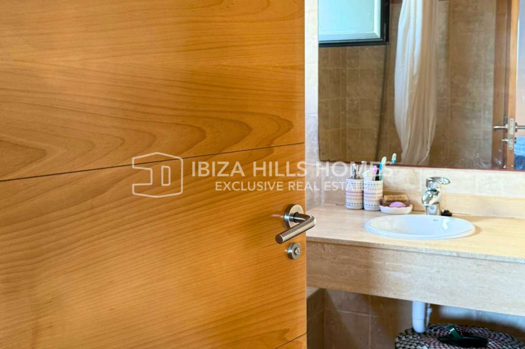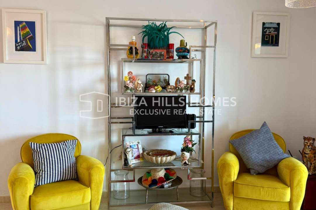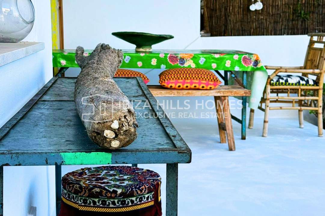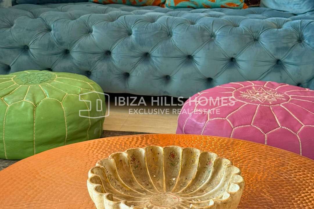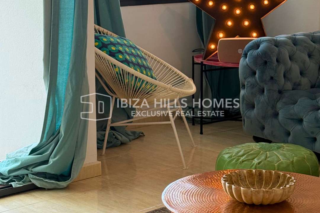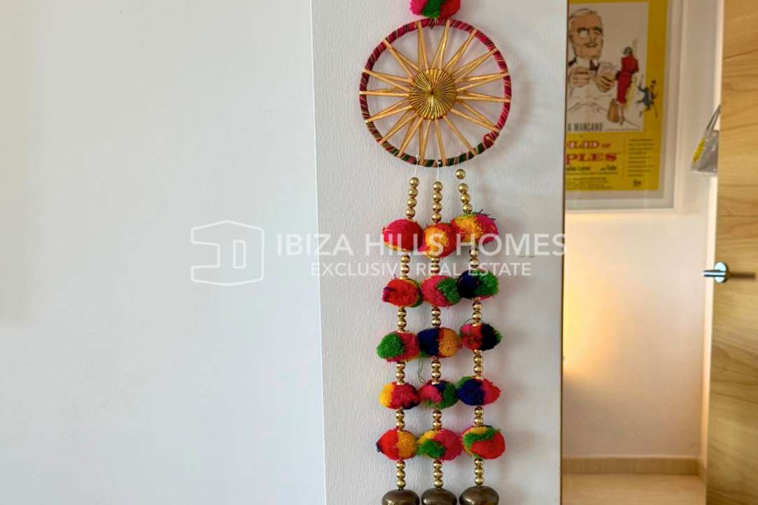 Stylish 3-bedroom apartment in Sant Josep with private rooftop, panoramic views, multiple terraces, parking for 3 cars, and quick access to Cala Vadella and Sunset Ashram.