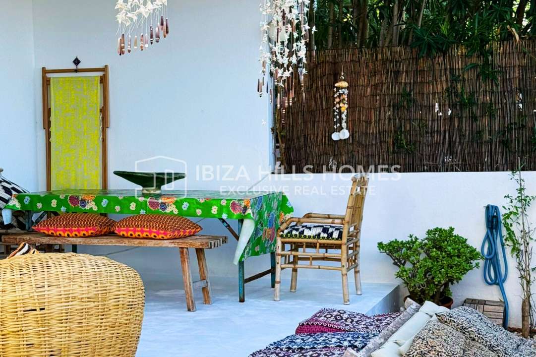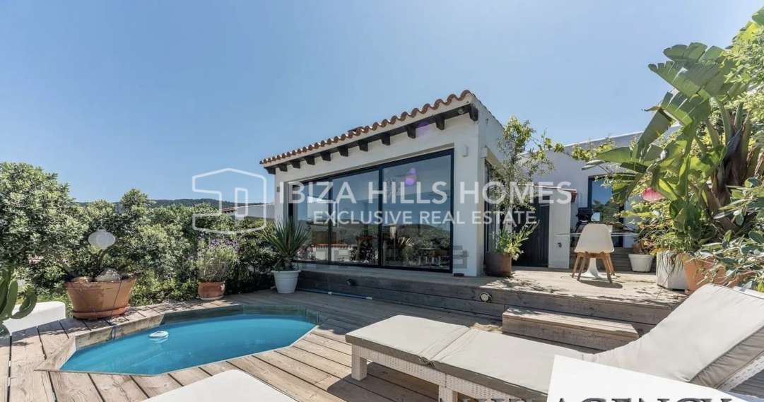 Charming corner house in Ibiza with rooftop sea views, private jacuzzi, Ibiza-style garden, and walking distance to the beach. Ideal as a family home, holiday property, or...