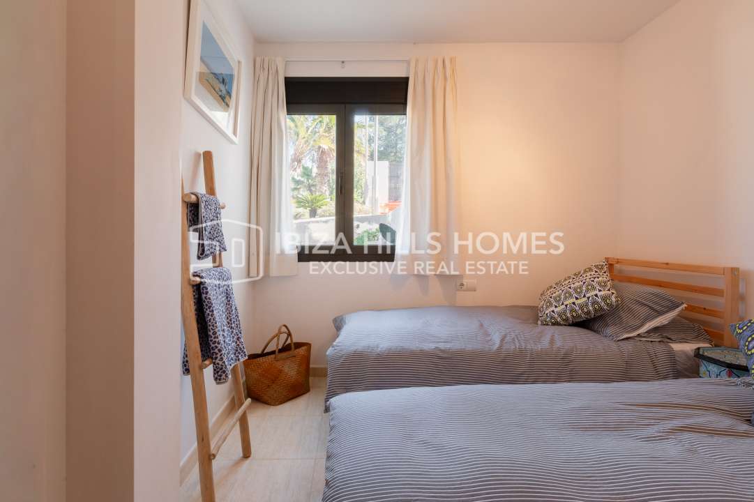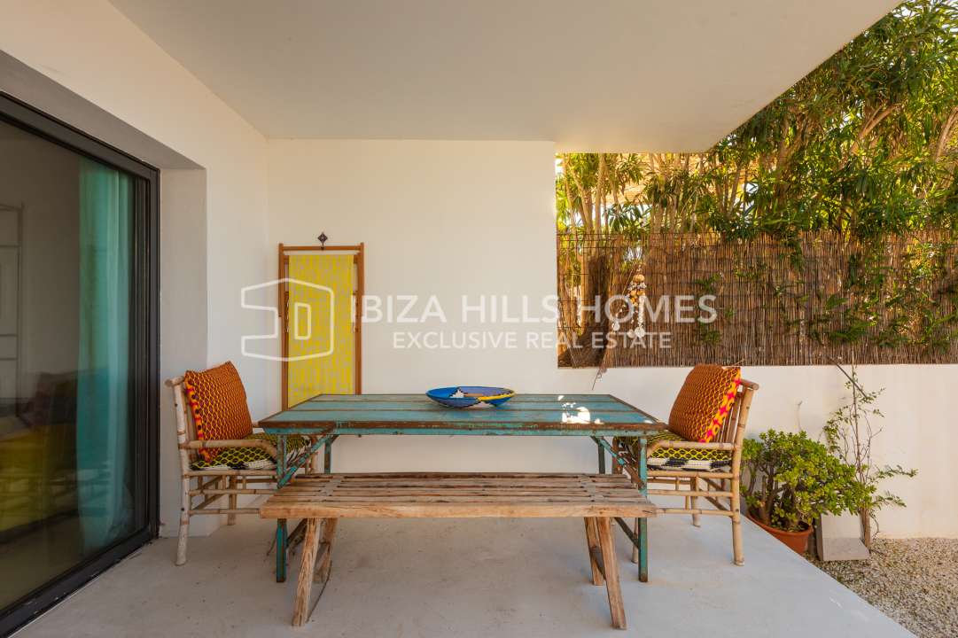 Moderno apartamento de 3 dormitorios con jardín privado en Cala Tarida, Ibiza. Comunidad cerrada con piscina, terraza, cocina abierta, parking y a pocos minutos a pie de la...