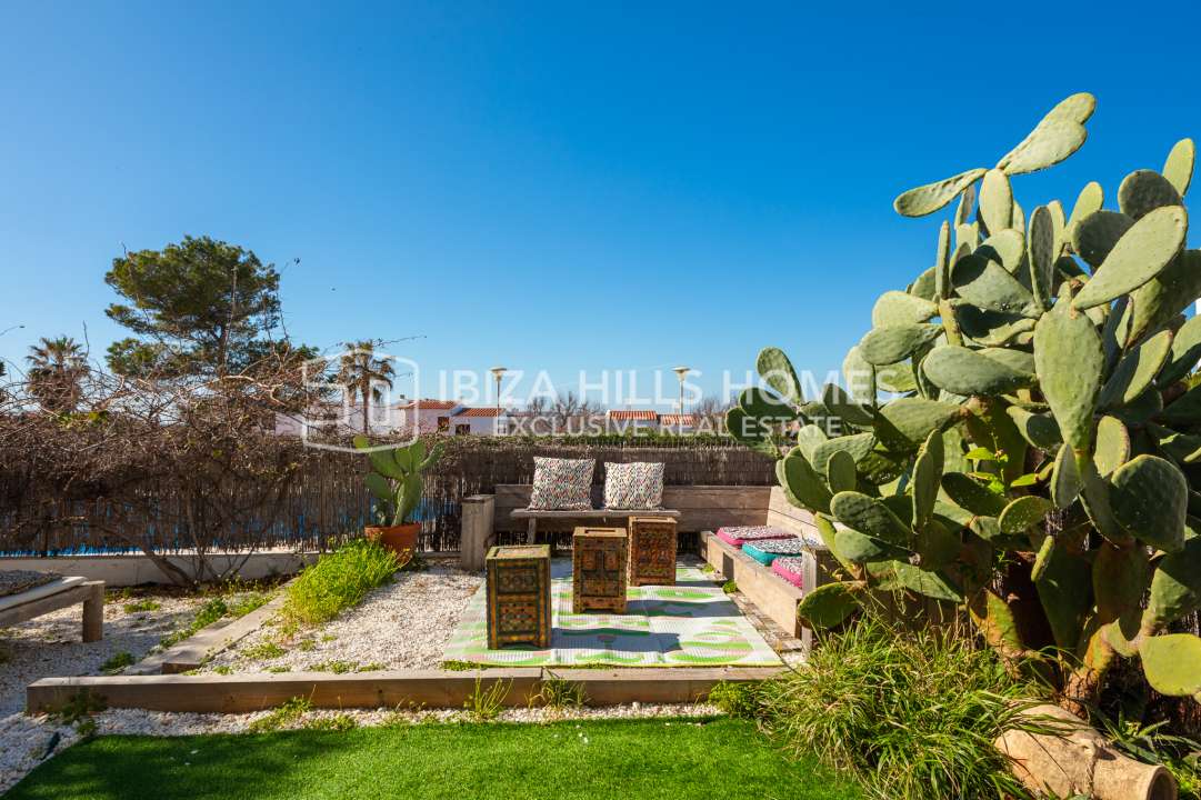 Encantadora casa esquina en Ibiza con vistas al mar desde la azotea, jacuzzi privado, jardín de estilo ibicenco y a pocos pasos de la playa. Ideal como vivienda o inversión.