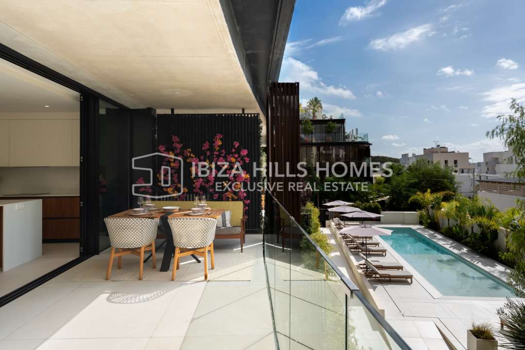 Appartement moderne de 3 chambres à Talamanca, Ibiza. Premier étage avec grande terrasse, finitions haut de gamme, chauffage au sol, climatisation, parking, débarras et accès à...