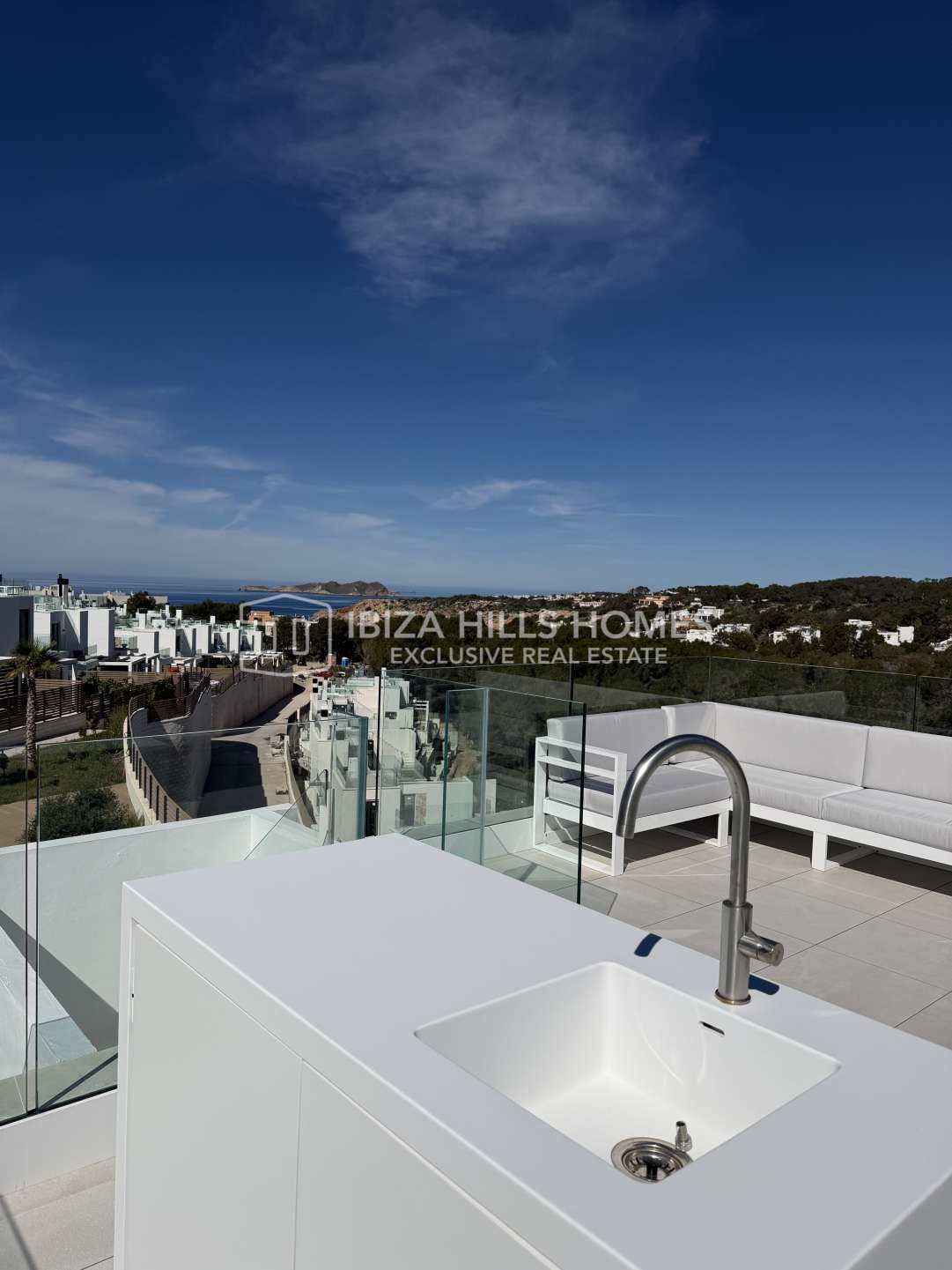 Contemporary five-suite seafront villa for rent in Cap Martinet, featuring panoramic sea views, infinity pool, elegant interiors and total privacy just minutes from Ibiza Town.